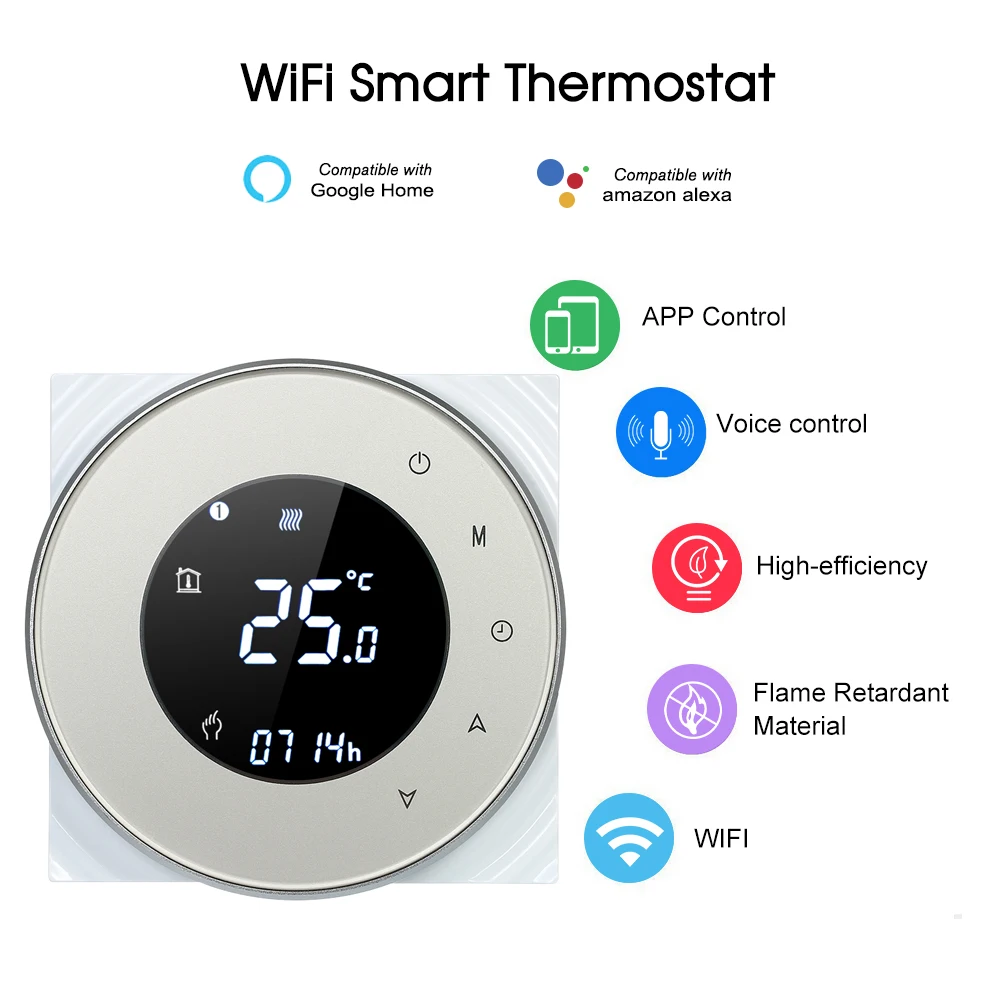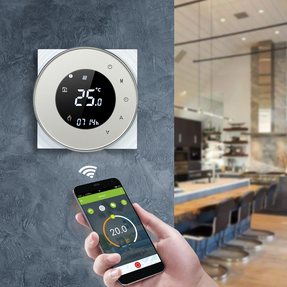 Это прочный, безопасный и надежный нагревательный термостат газового котла, который легко устанавливается и программируется. Он может обеспечить равномерный и комфортный контроль температуры. Бесплатное мобильное приложение позволяет вам управлять термостатом из любого места и в любое время удобно, что подходит для вас и дает вам энергосберегающие и комфортные условия жизни. Подходит для использования в офисных зданиях, больницах, школьных и развлекательных местах для контроля температуры.