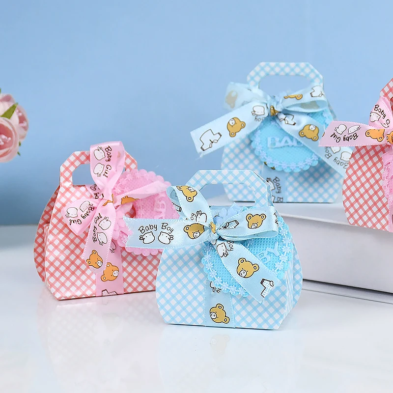 10 шт., детский душ, синий, розовый, конфетный мешок с нагрудником, лента, милый медведь, подарок, коробка шоколада для детей, день рождения, свадьба, вечеринка, принадлежности