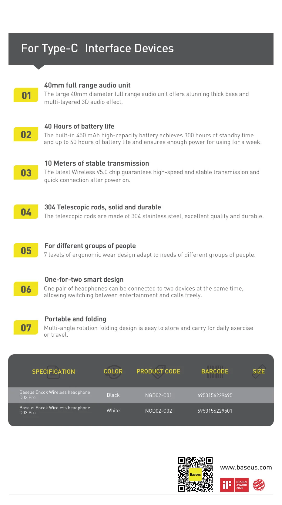 40 мм аудио блок | Беспроводной 5,0 | 40h Срок службы батареи | Двойное использование