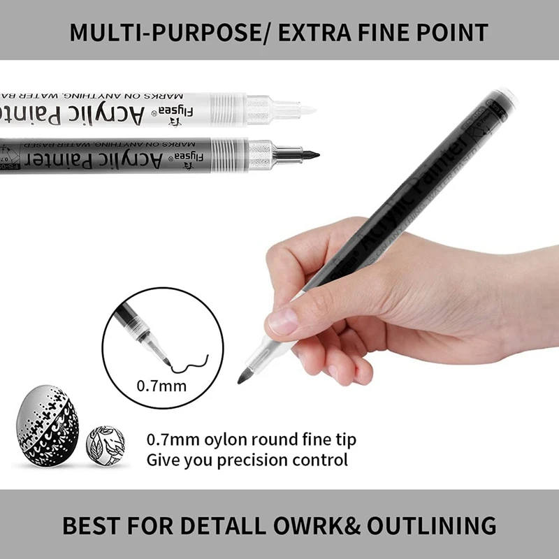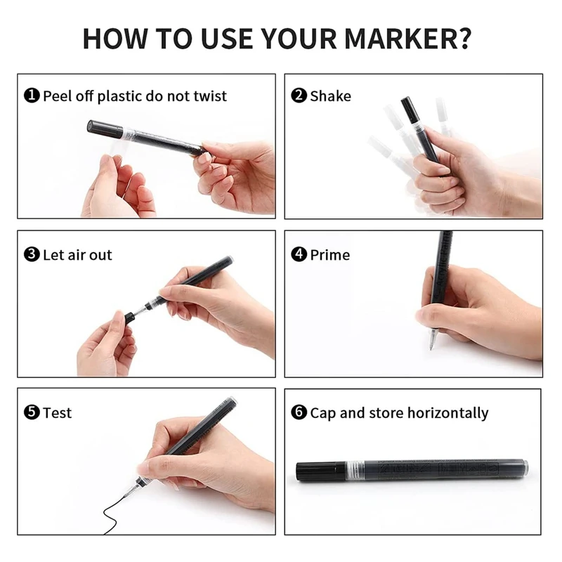 Acrylic paint marker pen used for decorative painting, artistic creation, and general craft painting projects. It can be used on almost any surface. Including Wood Plastic Rock Leather Glass Stone Metal Canvas Ceramic etc.