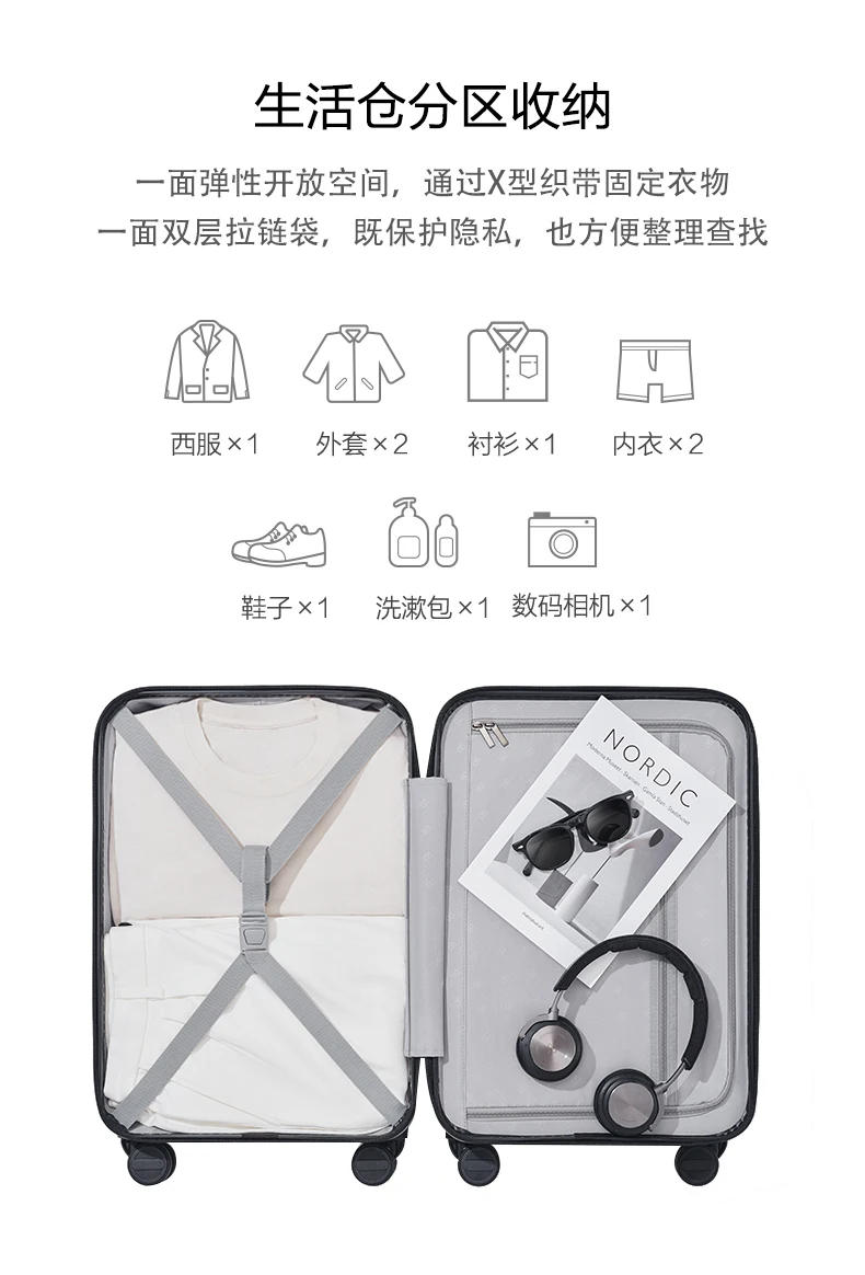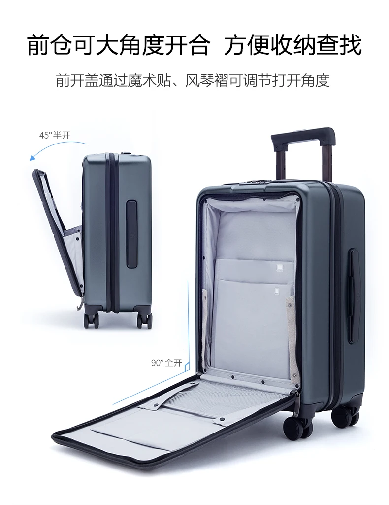 Новейший чемодан Xiaomi 90 NINETYGO Bussiness, 20 дюймов, чехол для посадки с передней крышкой, вращающиеся колеса, жесткий корпус, замок для багажа TSA