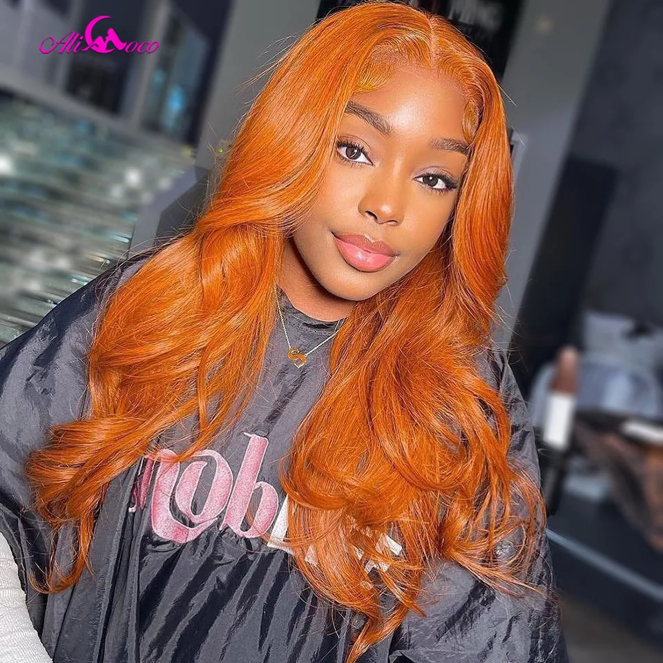 Али Коко цветной оранжевый парик объемная волна Remy человеческие волосы парики 13X4 кружевной фронтальный парик предварительно выщипанные волосы для женщин