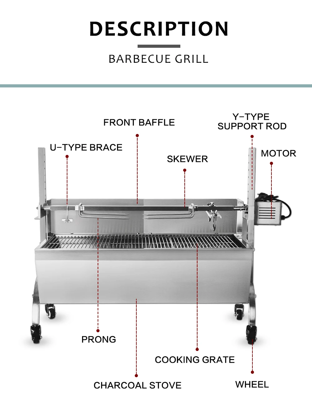 4. Вращающийся стержень, в отличие от обычной печи, так что еда может быть равномерно нагревается. Ручное Вращение вала также возможно там, где нет источника питания.