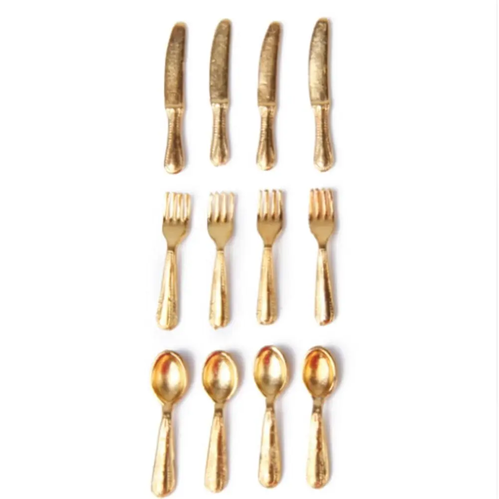 Абсолютно новый и высокое качество Материал: сплав Цвет: серебристый, золотой, бронзовый Размер: Длина: 20 мм (± 2 мм) Количество: 12 шт./компл. Спецификация: вилка * 4 шт.; Нож * 4 шт.; Ложка * 4 шт.; Применение: игрушка, подарок, 1:6 масштаб или 1:12 кукольный домик и так далее Посылка включает в себя: 12 шт./компл. миниатюрная посуда (вилка * 4 шт.; Нож * 4 шт.; Ложка * 4 шт.;)