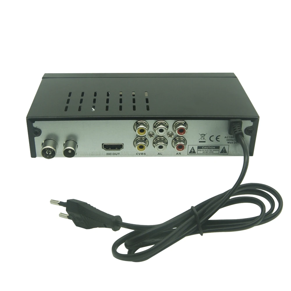 Задняя панель: 1 * Разъем ANT-IN (IEC-162-2 гнездо); 1 * Разъем ANT-OUT (IEC-162-2-папа); 1 * HDMI (совместим с HDMI V1.3/V1.4), 1 * RCA CVBS AL AR разъем; 1 * Ypbpr RCA; 1 * коаксиальный.