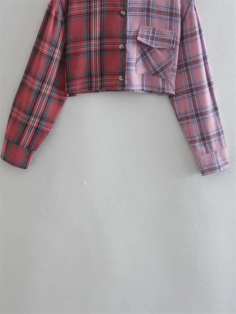 PUWD Женская короткая рубашка с контрастным узором в клетку элегантная красивая уличная стильная удобная и свободная женская рубашка для отдыха на лето 2022