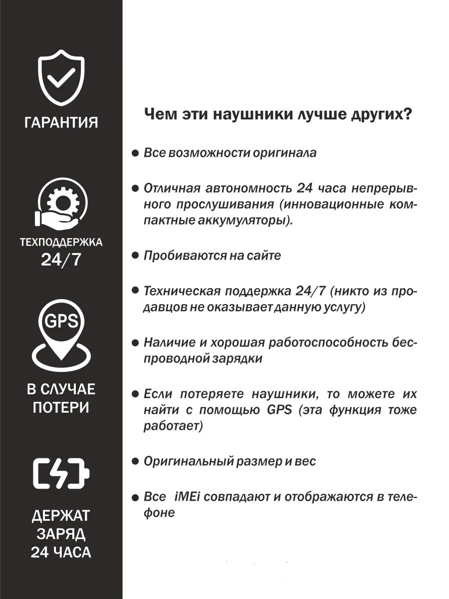 - 3 серийных номера (у кейса и каждый наушника свой как на ориг)