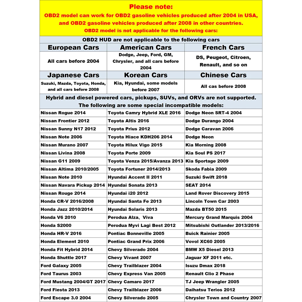 Brand NamegearelecOriginMainland ChinaWire or WirelesswiredMeasurement unitpiece/piecesEach pack1FunctionOBD2FunctionOBD IIFunctionvehicle speed,engine RPM,water temperatureFunctionDigital Car Speedometer OdometerFunctioncar electronics accessoriesFunctionSpeedometerFunctioncar projetorFunctionhudFunctionAuto HUD Head Up Display