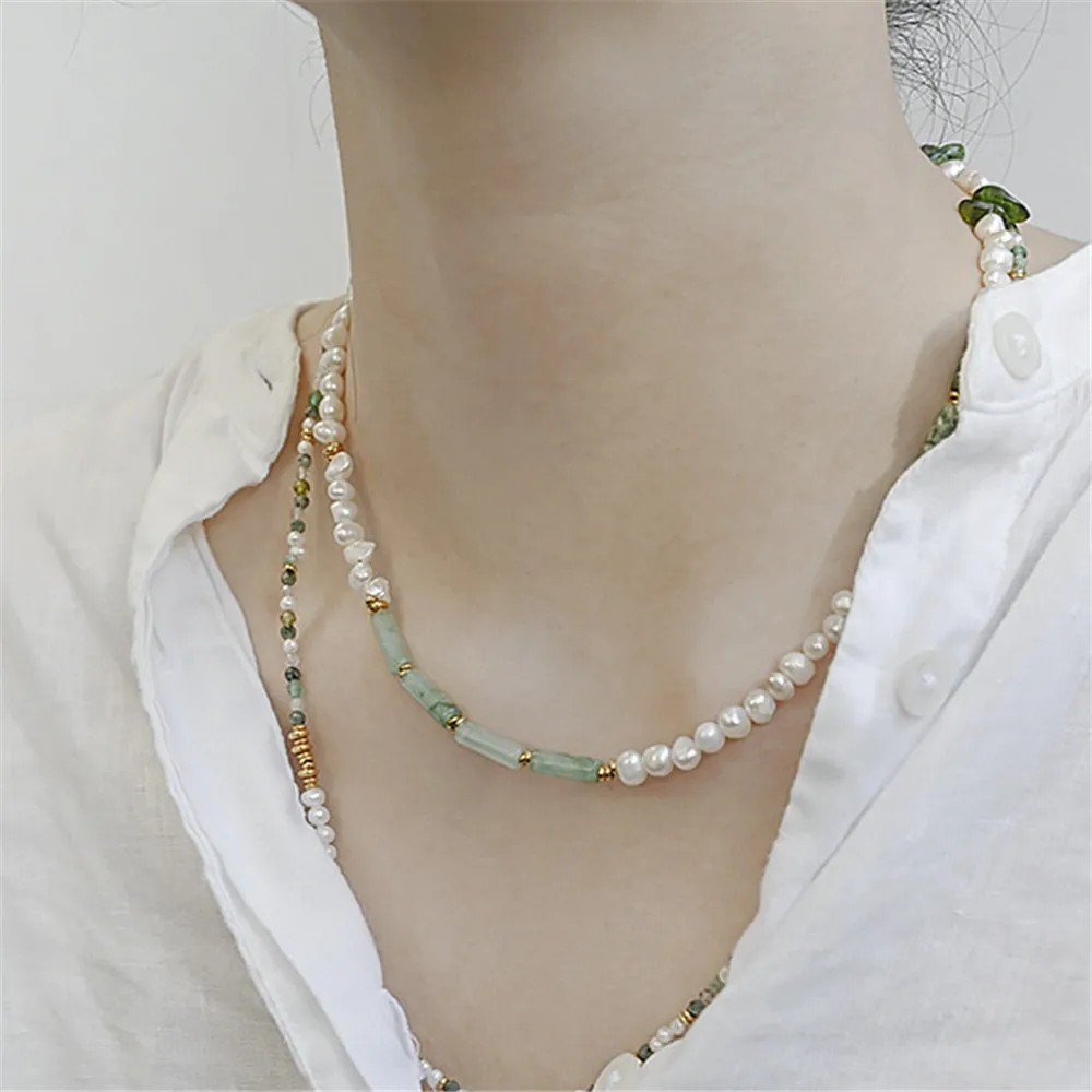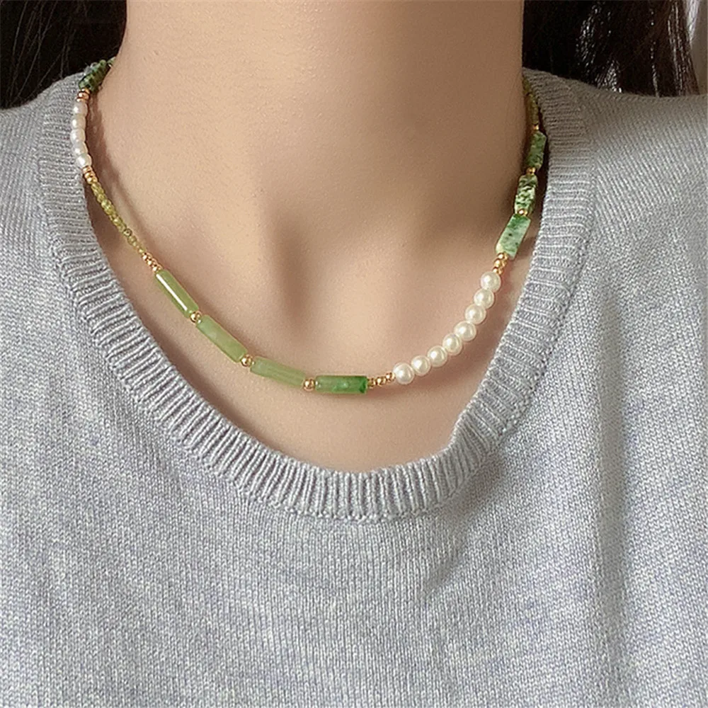 925 Silver Natural Pearl Xiuyan Jade Peridot Female Necklace Vintage National Trend Temperament Versatile Niche Clavicle Chain