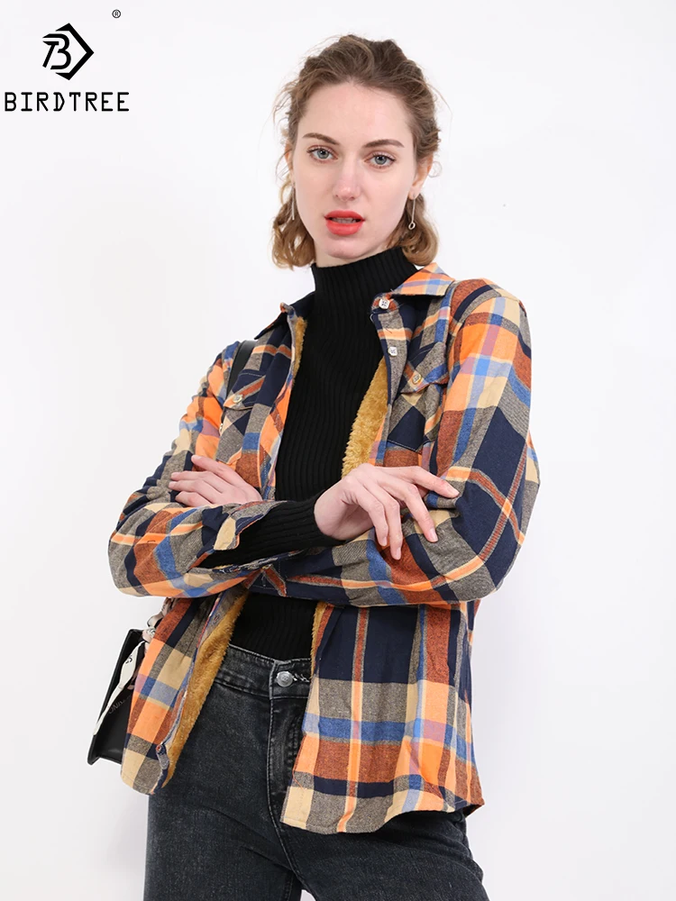 Бархатные толстые теплые женские рубашки в клетку Женские топы с длинными рукавами M-XXL зимняя одежда с ворсом; Повседневные Блузка осенняя одежда T23505X