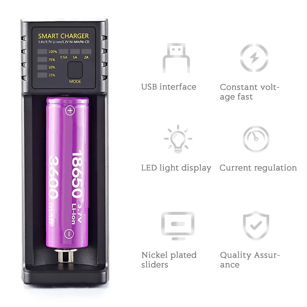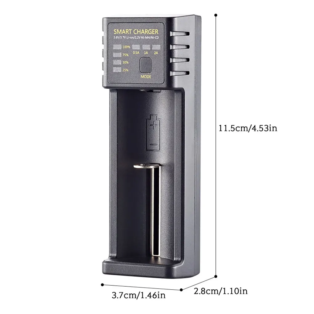 Зарядное устройство с одним слотом имеет три режима зарядки, высокую токовую зарядку, Совместимость с различными перезаряжаемыми батареями.