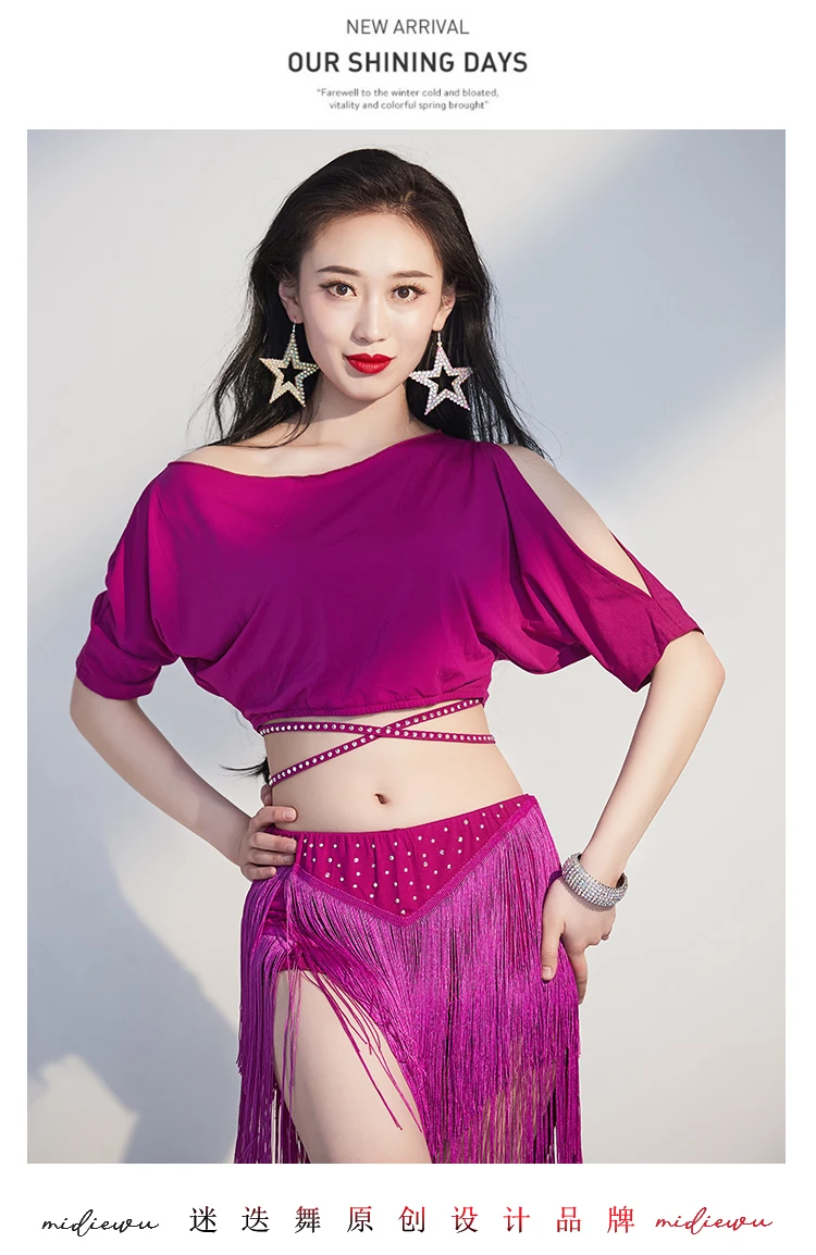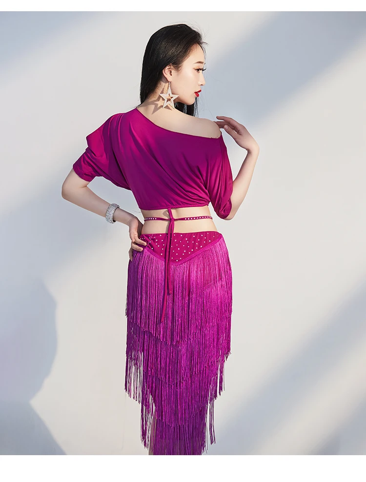 Adult Female Belly Dance Practice Clothes Short Fringed Skirt Oriental Dance Performance Costume for Women Dance Suit.