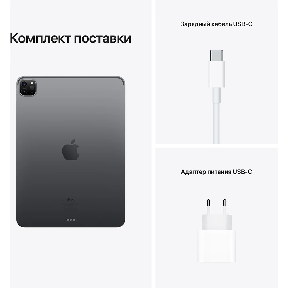iPad Pro оснащён чипом Apple M1 — это высочайшая производительность и возможность целый день работать без подзарядки. Дисплей Liquid Retina 11 дюймов впечатляет не только качеством, но и компактностью. Модели с поддержкой сотовых сетей позволят оставаться на связи даже там, где нет Wi‑Fi. А благодаря фронтальной камере с функцией «В центре внимания» вы всегда будете в кадре во время видеозвонков. Передовые камеры iPad Pro и сканер LiDAR незаменимы для отличных фото, видео и дополненной реальности. Через порт Thunderbolt можно подключать высокопроизводительные аксессуары. Кроме того, вы можете пользоваться Apple Pencil для рисования, комментирования и заметок, а также клавиатурой Magic Keyboard с трекпадом для комфортного набора текста.