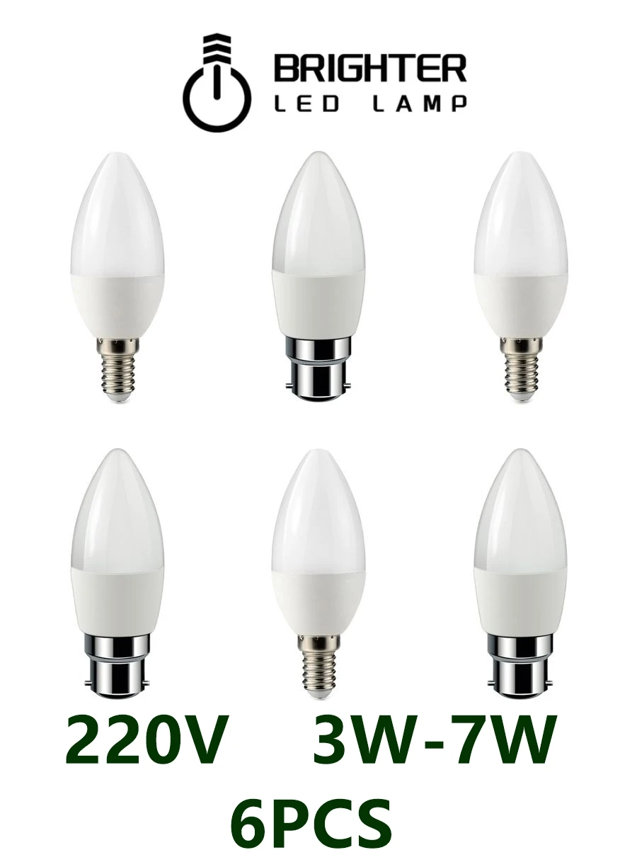 6 шт. светодиодные лампы свечи мин E14 E27 B22 3W 5W 6W 7W 3000k 4000k 6000k AC220v-240v светодиодные свечи лампы для украшения дома