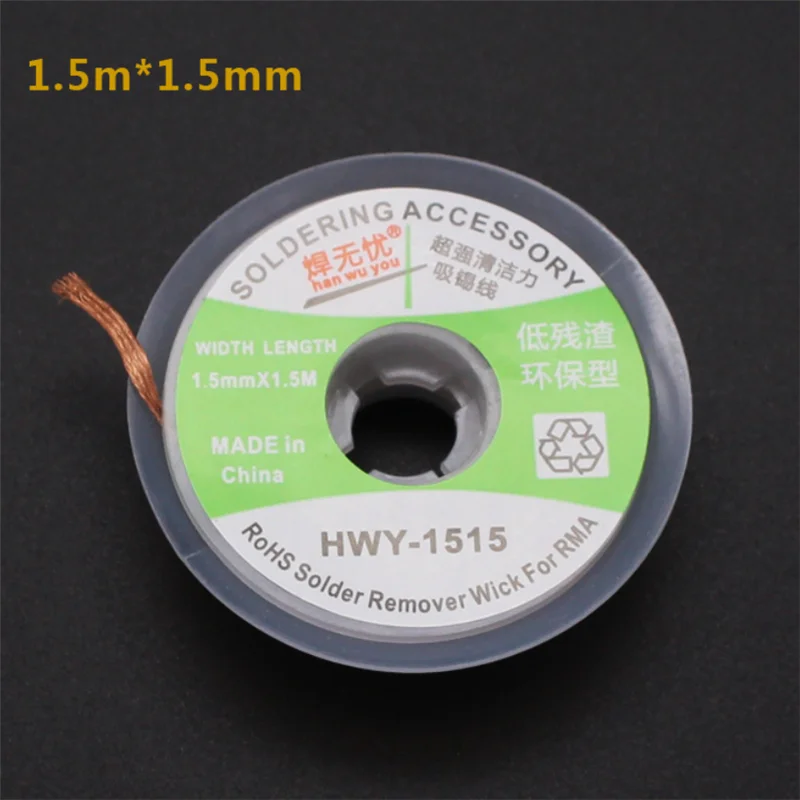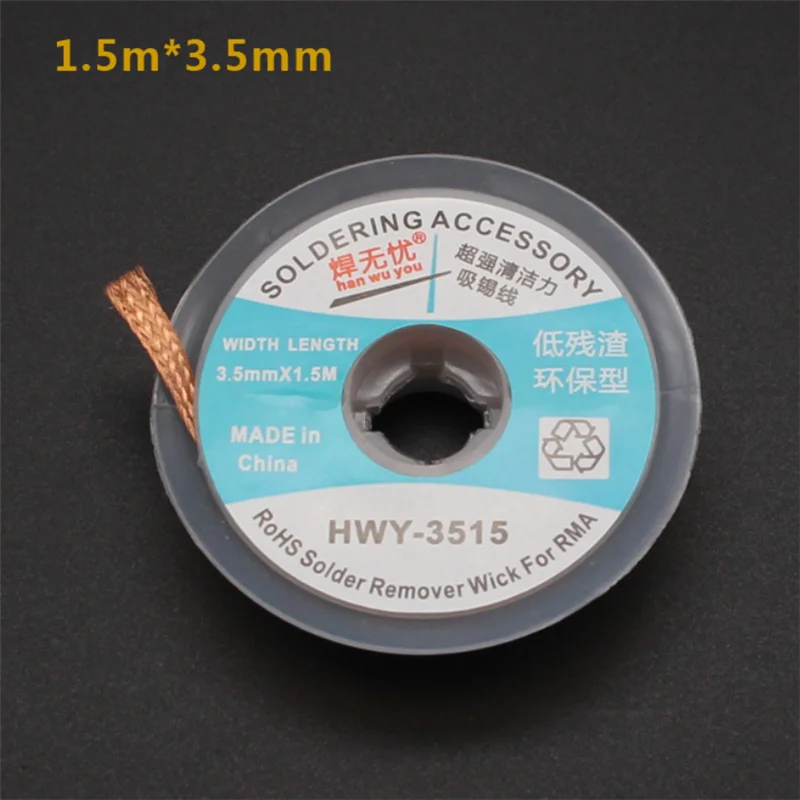 1. Поместите промывочный фитиль над припоем, чтобы быть удаленным, затем нажмите на наконечник нагреваемого паяльника на фитиль для распайки, припой будет поглощен