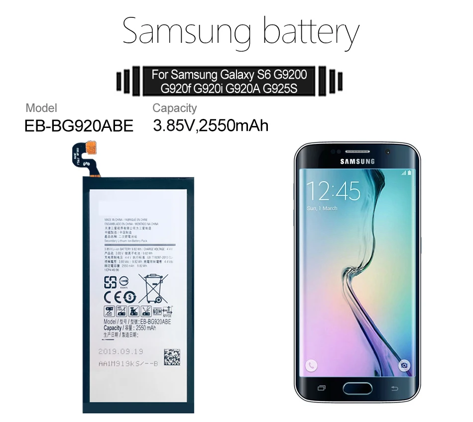 Оригинальный EB-BG920ABE для Samsung GALAXY S6 SM-G920 G920F G920i G920A G920V G9200 G9208 G9209 сменный аккумулятор 2550 мАч