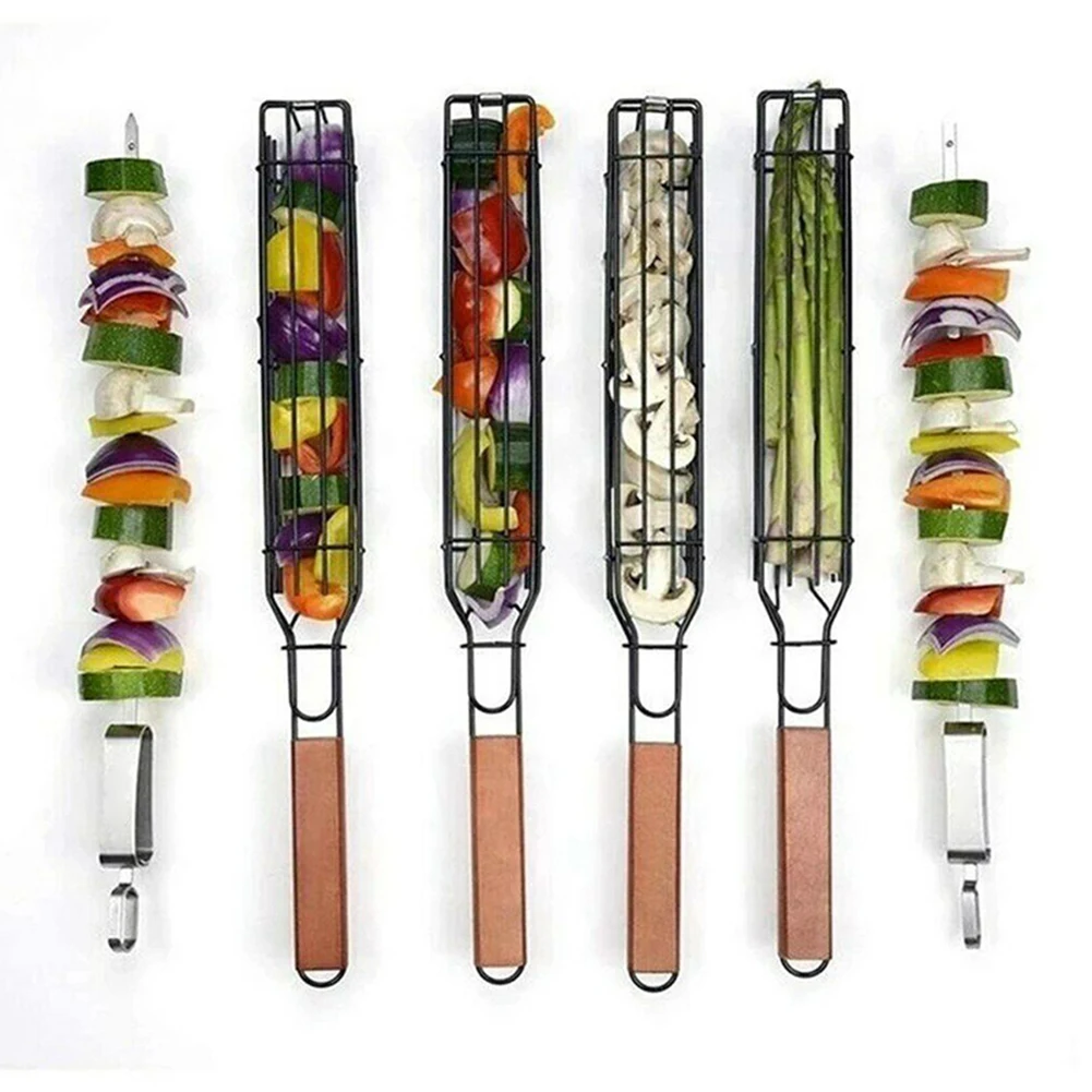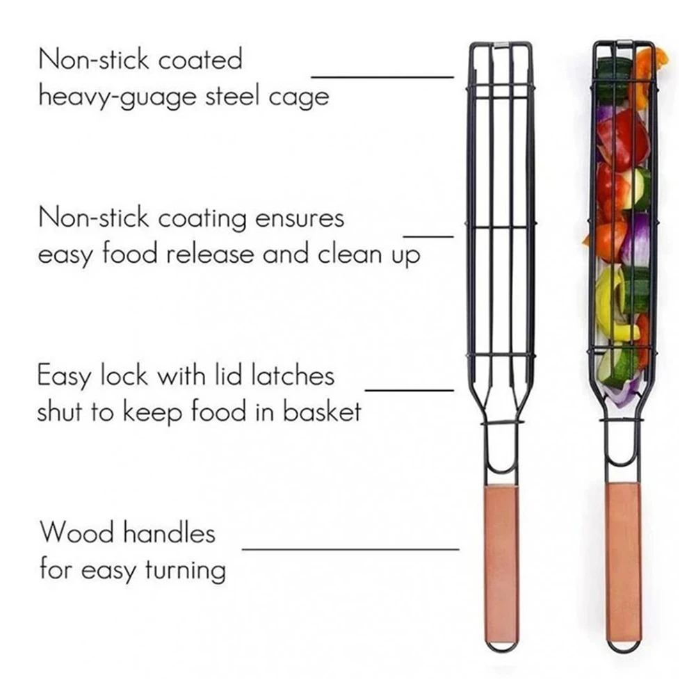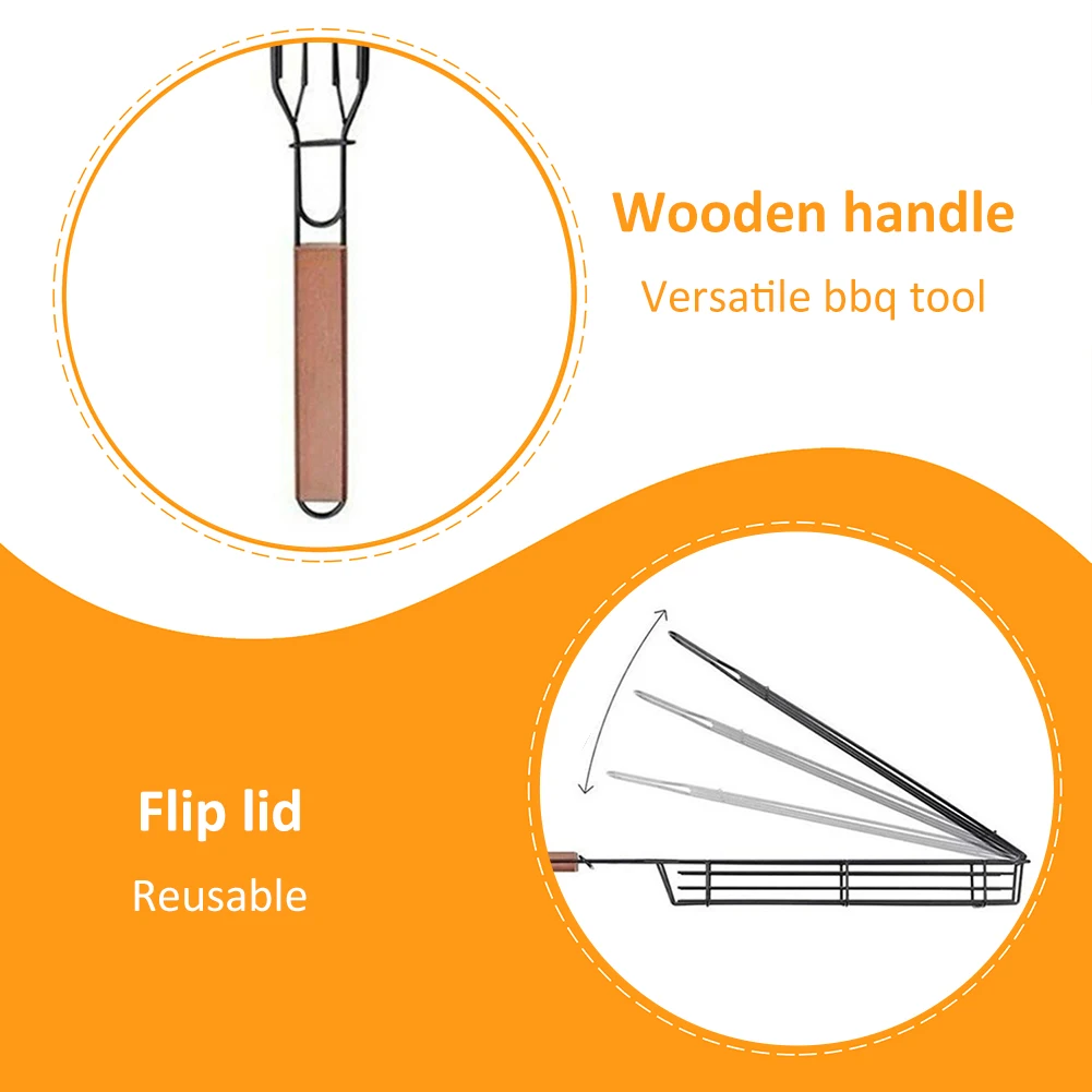 * 2. Изготовлено из железа с антипригарным покрытием, в отличие от обычных шпагат для барбекю, эти металлические корзины прочные и никогда не горят.