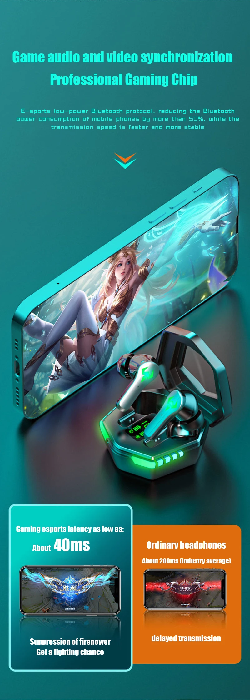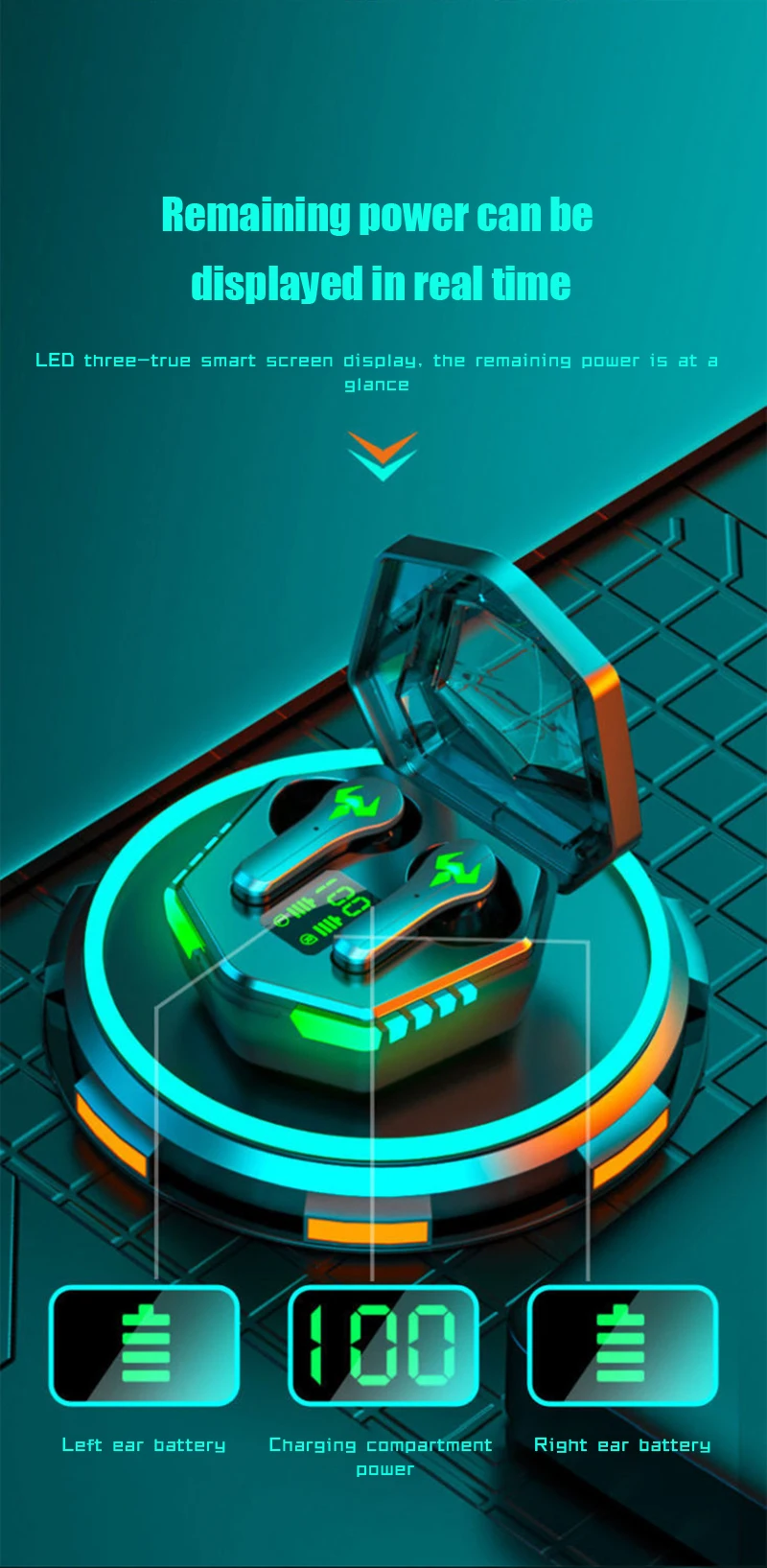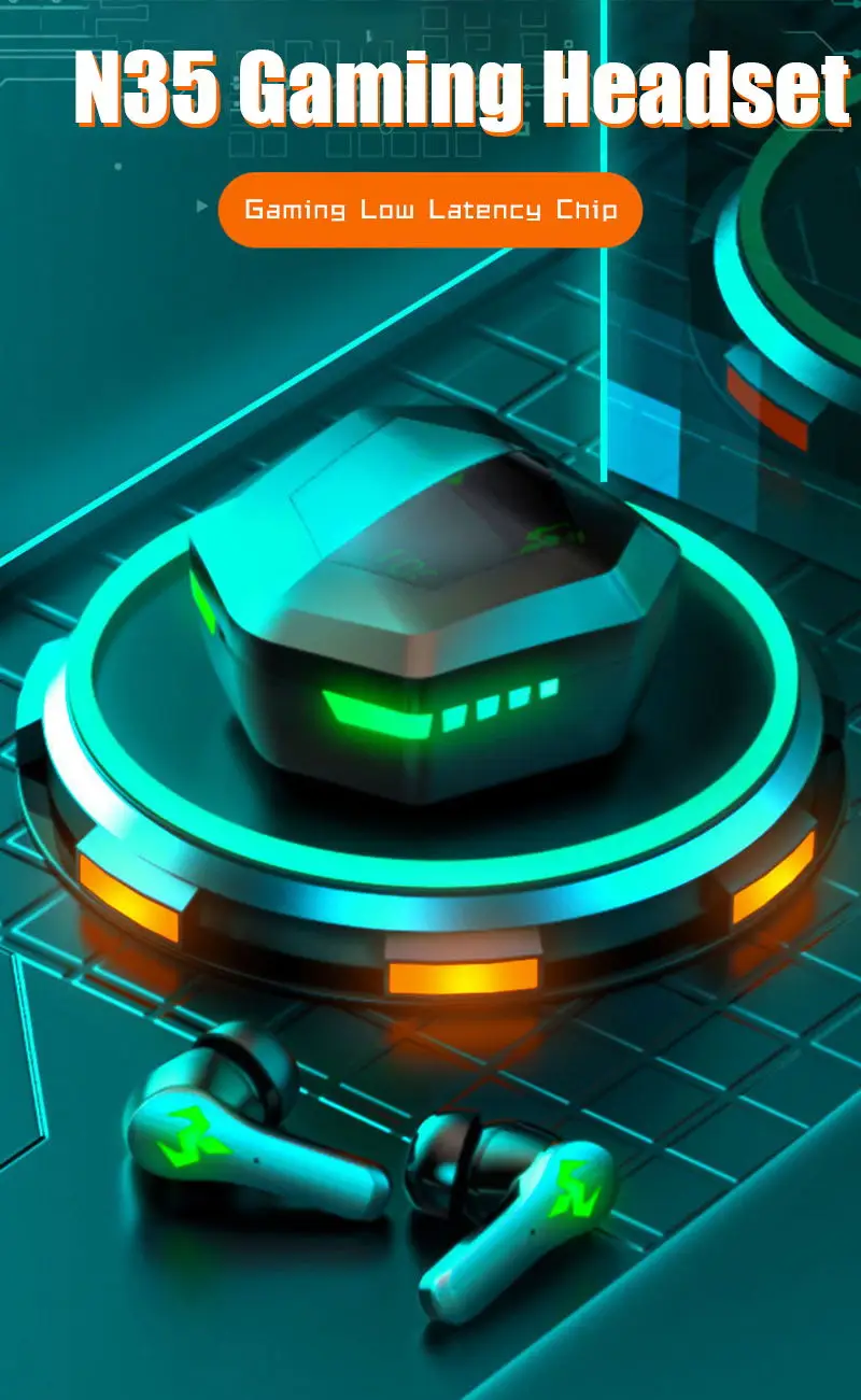TWS N35 игровая гарнитура, беспроводные Bluetooth наушники, двойной режим, светодиодный музыкальный дисплей, наушники с нулевой задержкой, сенсорные наушники с микрофоном