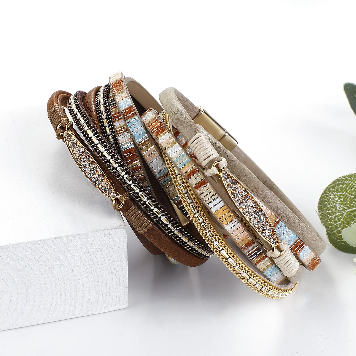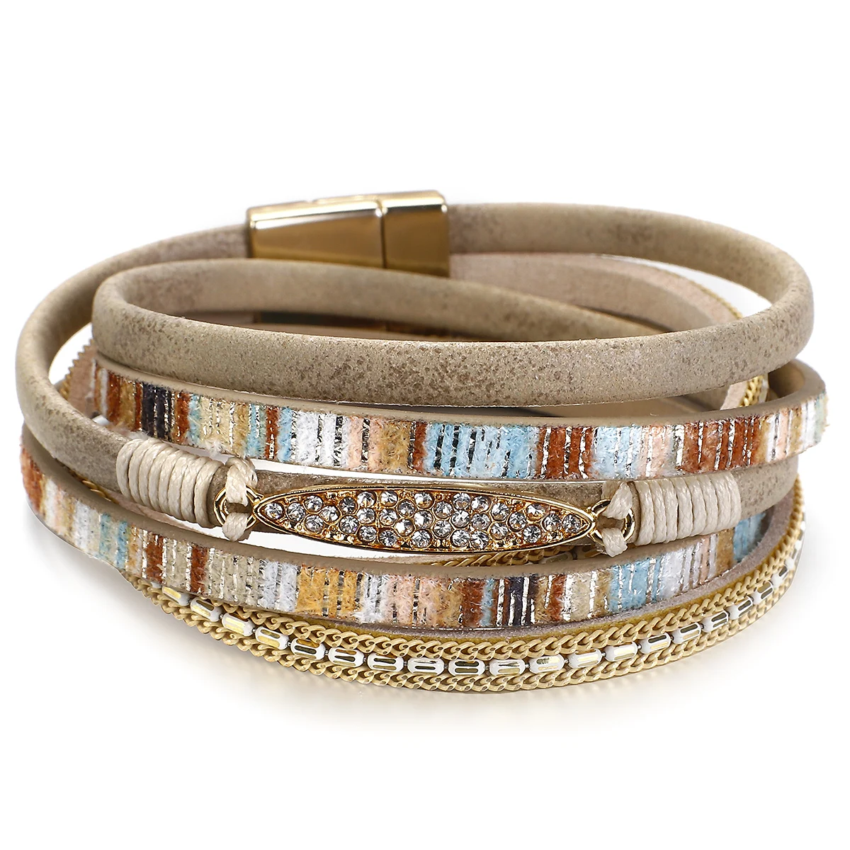 Amorcome богемский Плетеный кожаный шнур браслеты винтажный двойной обернутый магнит застежка женский ручной ювелирный женский браслет подарок