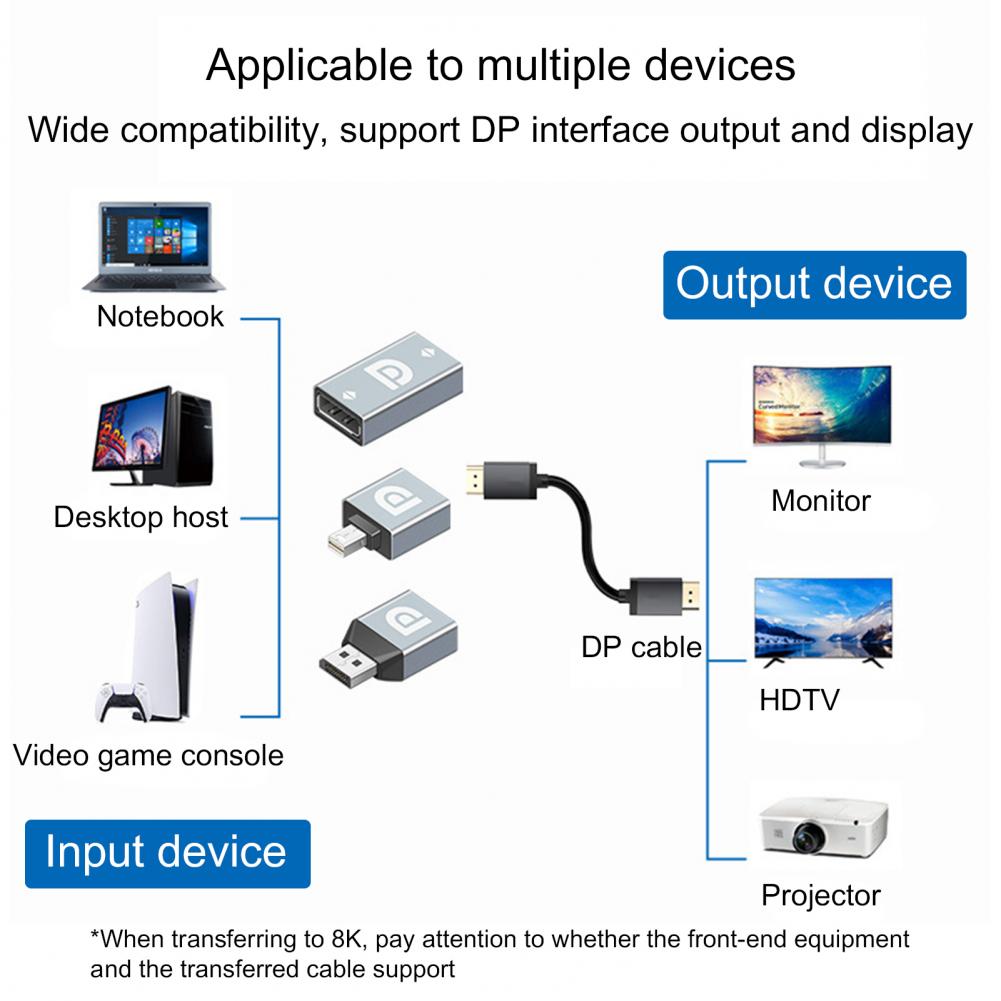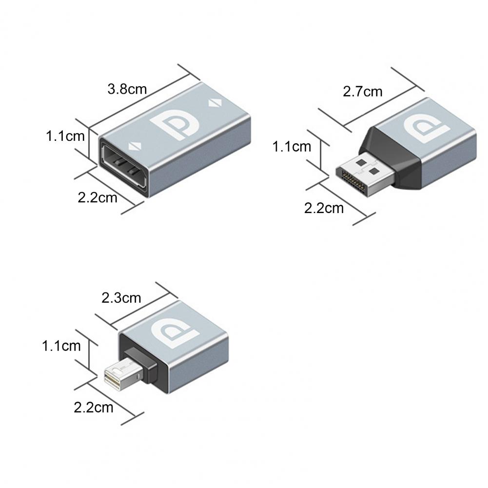 Длина DP к женскому 8K конвертер 3,8 см, ширина 2,2 см и рост приведены исключительно в 1,1 см. Длина дисплейный порт MiniDP типа «папа» к DP женский 8K конвертер 2,7 см, ширина 2,2 см и рост приведены исключительно в 1,1 см. Длина DP к гнезду 8K конвертер 2,3 см, ширина 2,2 см и рост приведены исключительно в 1,1 см.