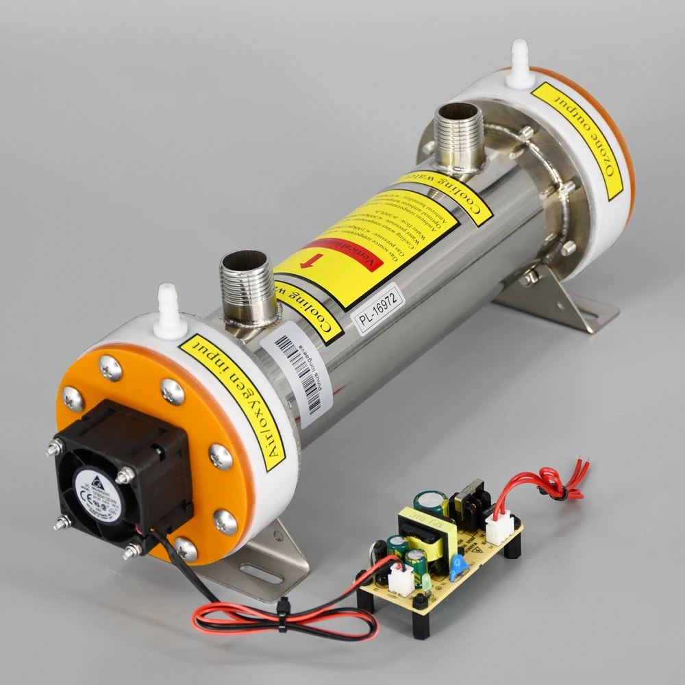 .Вентилятор охлаждения:Внутренний электродный охлаждающий вентилятор: 12В 4 см 4028 высокоскоростной охлаждающий вентилятор + 1. 5А импульсный источник питания (трансформатор), Входное напряжение: AC100V-AC240V...Требования к установке:1. Озоновая трубка: вы можете установить ее на металлическую оболочку, мы рекомендуем подключить дополнительный заземляющий провод к оболочке озоновой трубки.Пожалуйста, установите озоновую трубку вертикально в соответствии с подсказками, входом охлаждающей воды в нижней части и выходом воды в верхней части.Воздуховод сверху, озоновый выход снизу.