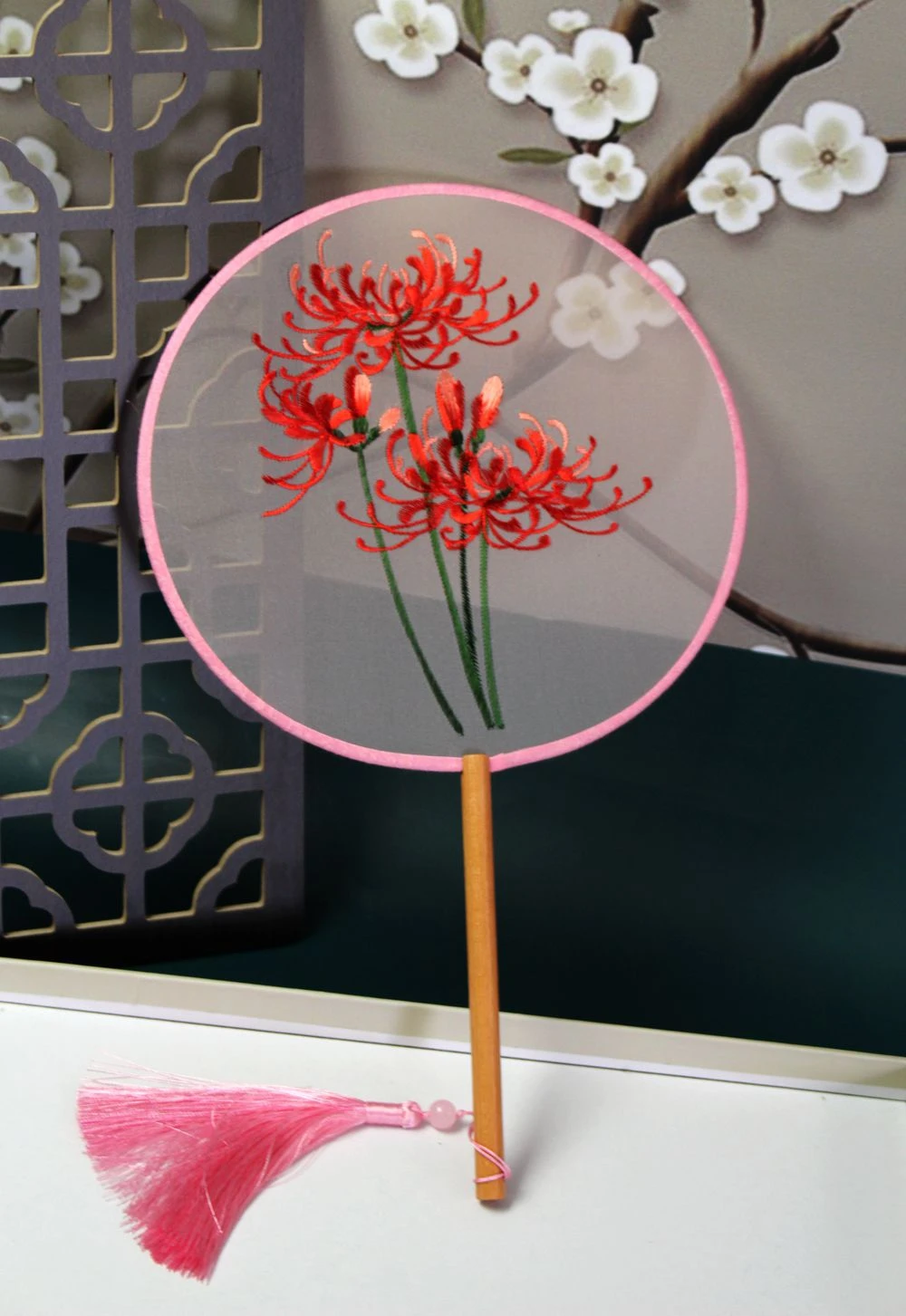 Это очень красивый винтажный веер, изготовленный из бамбука с элегантным узором, тщательно вырезающим китайский стиль.