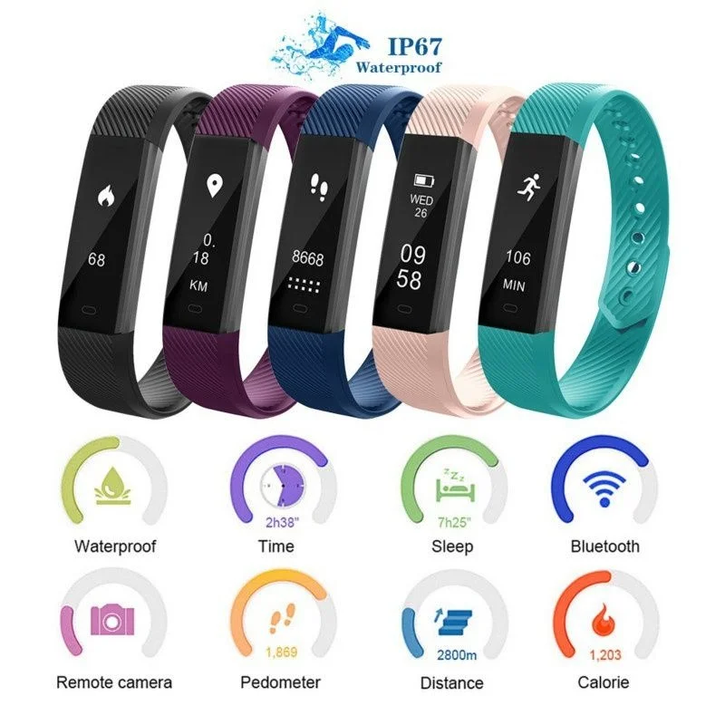 Фитнес-браслет ID 115 смарт-браслет Вибрационный будильник смарт-Браслет фитнес-часы Smartband для IOS Android