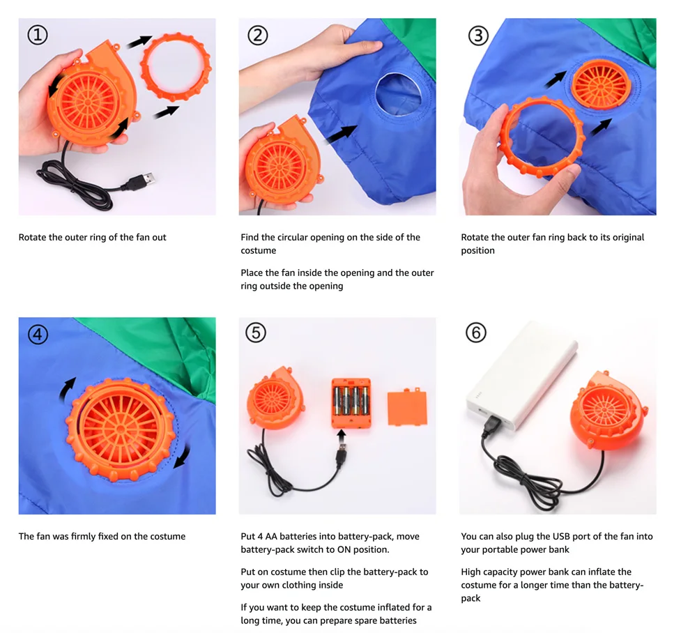 Design concept:Costume easily folds away for compact storage,Fastenings around neck and ankles keep air inside the suit.
