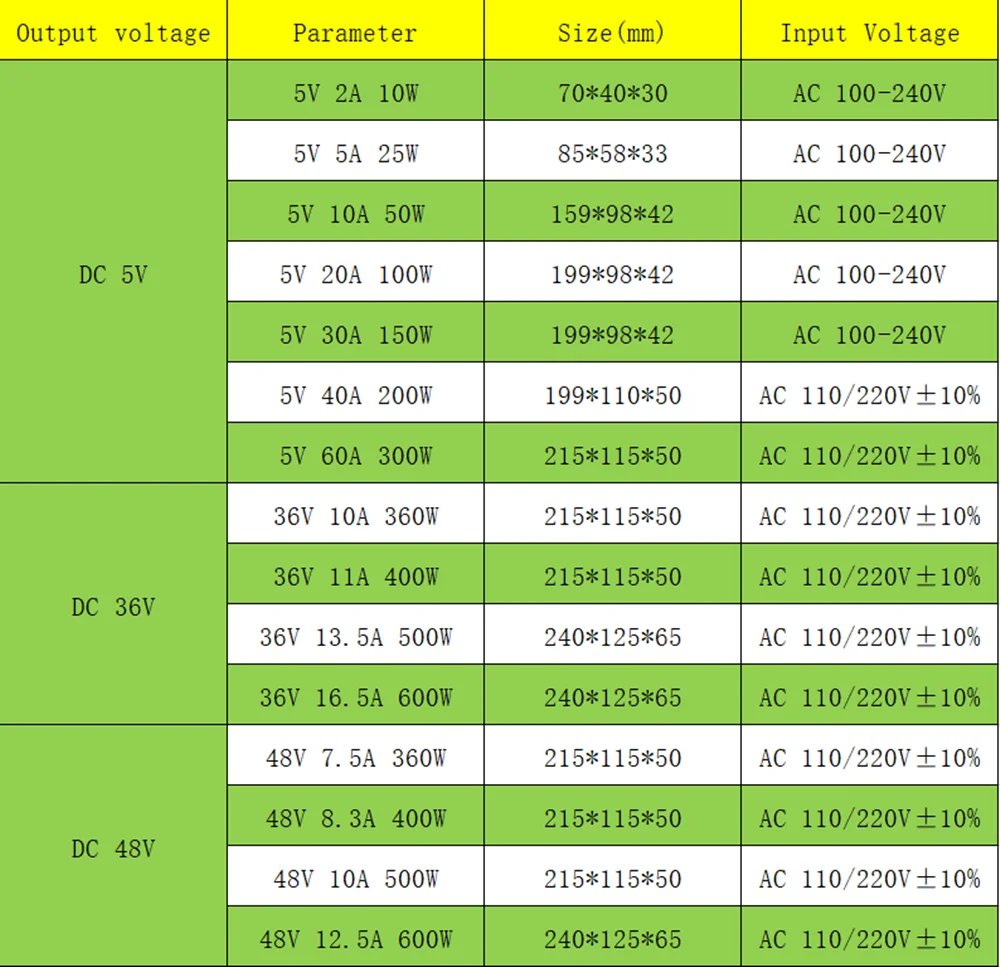 Выходное напряжение: 5 В постоянного тока/12 В постоянного тока/24 В постоянного тока/36 В/48 в