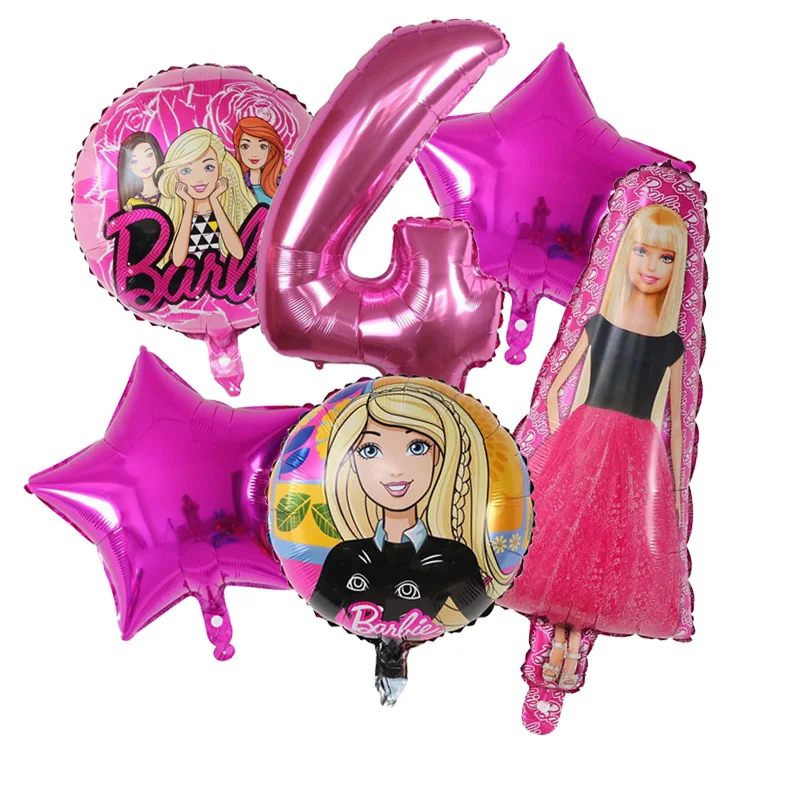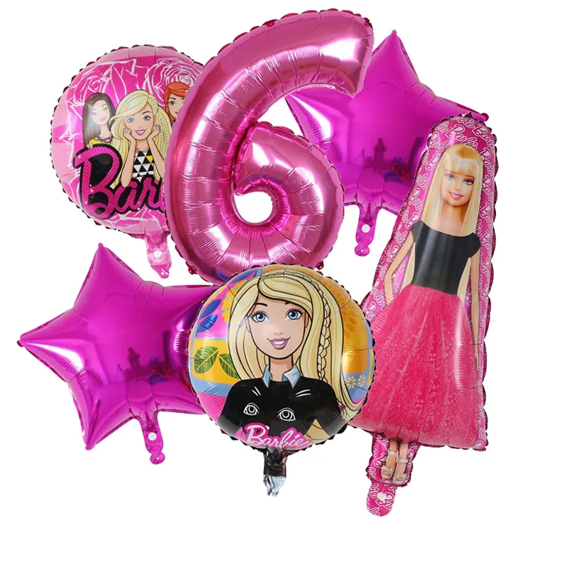 6Pcs Surprise Barbiee Princess Doll Theme Foil Balloons Party Decoration Cartoon Pink Girl Birthday Number 1-9 Helium Ball Toys