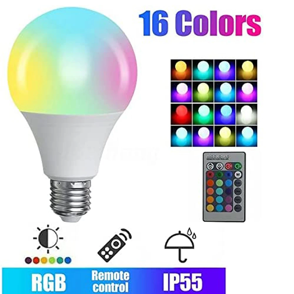 6. Светодиодный светильник, меняющий цвет, с беспроводным пультом дистанционного управления для использования в любом стандартном сокете накаливания