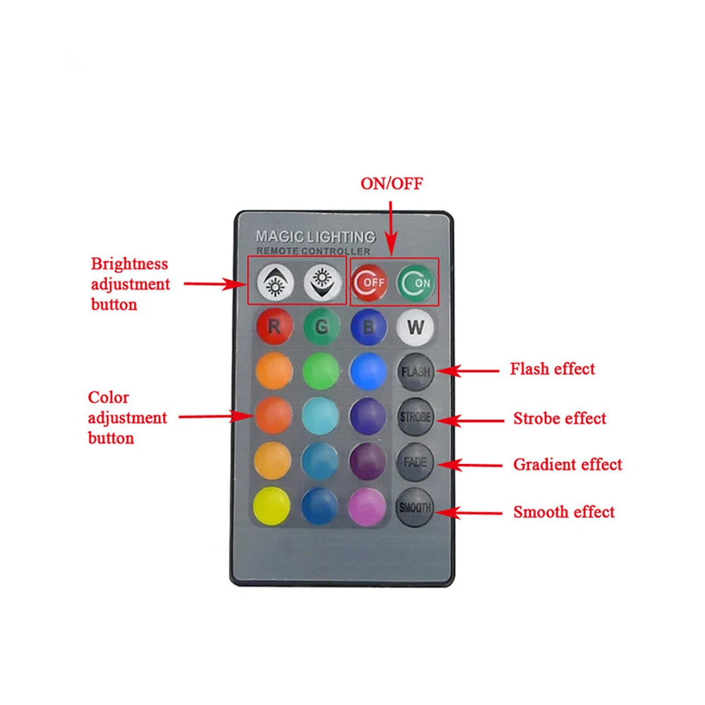 7. Его можно использовать в одном статическом (фиксированном) цвете или просто нажмите на пульт дистанционного управления, чтобы произвести один из четырех эффектов изменения цвета