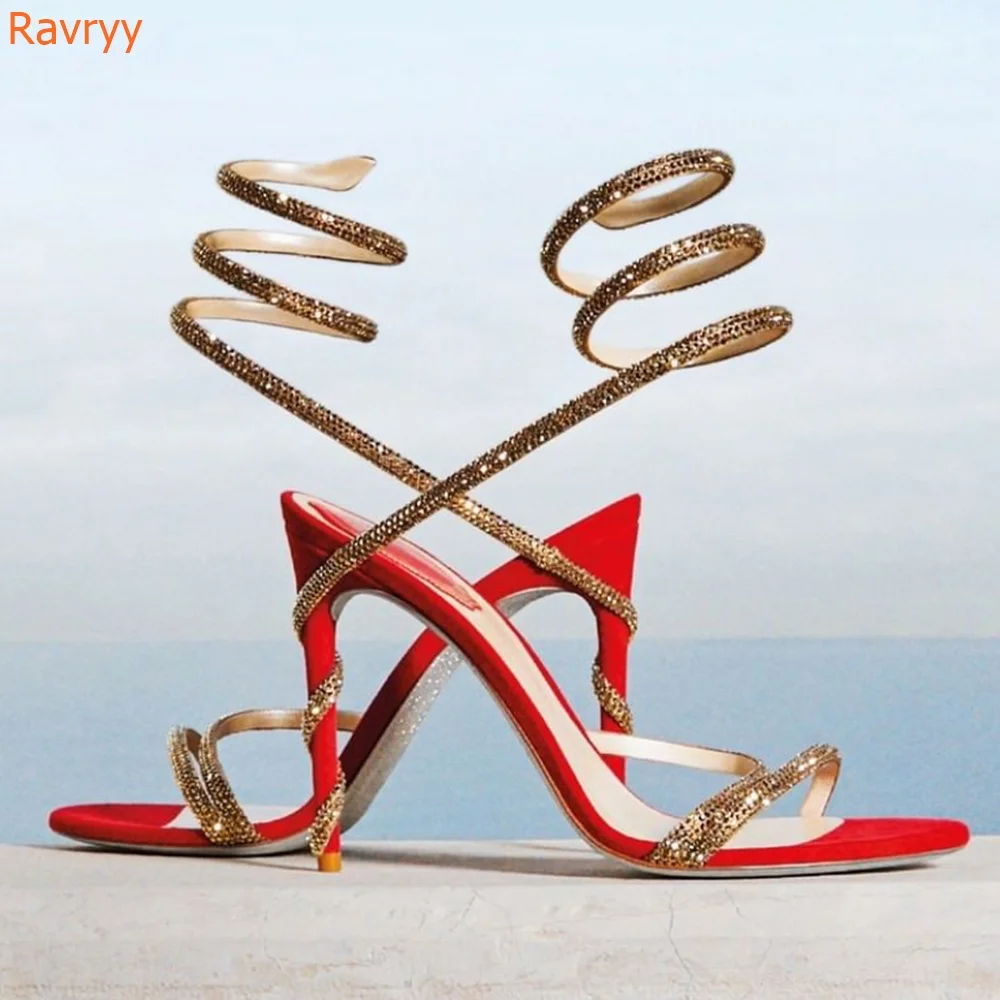 Название продукта: с украшением в виде кристаллов Стразы шпагат сандалии змеиная Форма Ремешок на щиколотке обувь с открытым носком; Женские летние блестящие босоножки на высоком каблуке серебряного цвета; Комплект из золотистых туфель