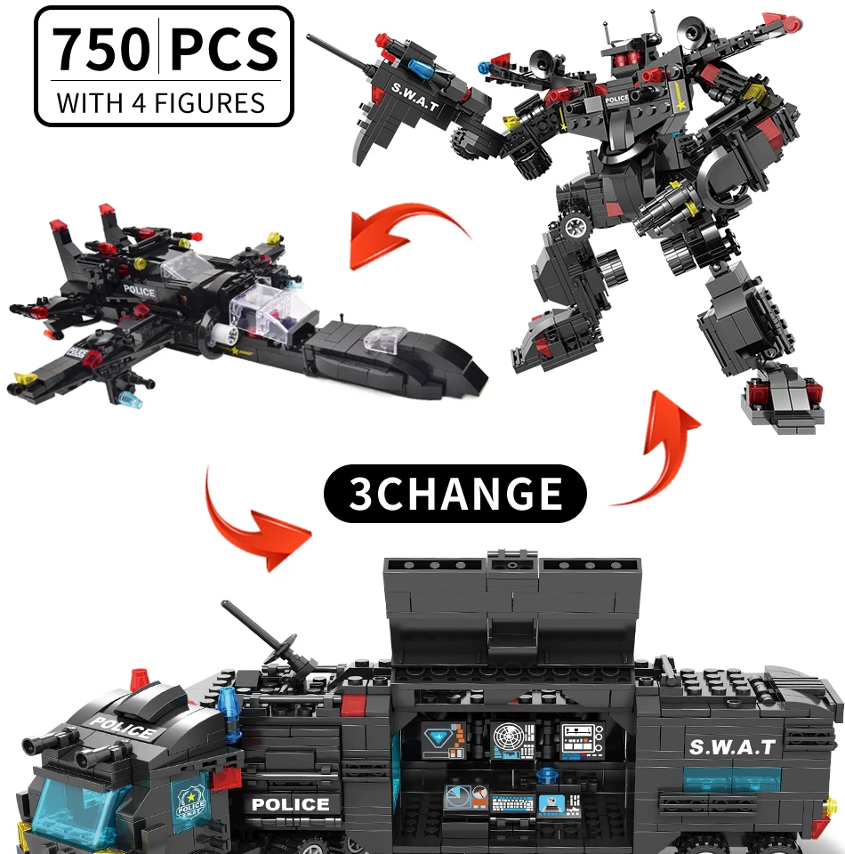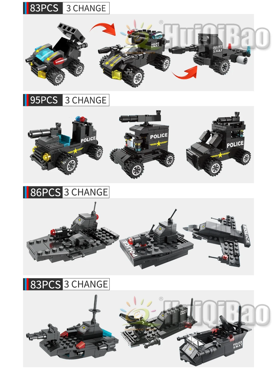 8 в 1 SWAT полицейская модель грузовика сборные строительные блоки вертолет автомобиль Развивающие игрушки совместимы с Lego мальчиков