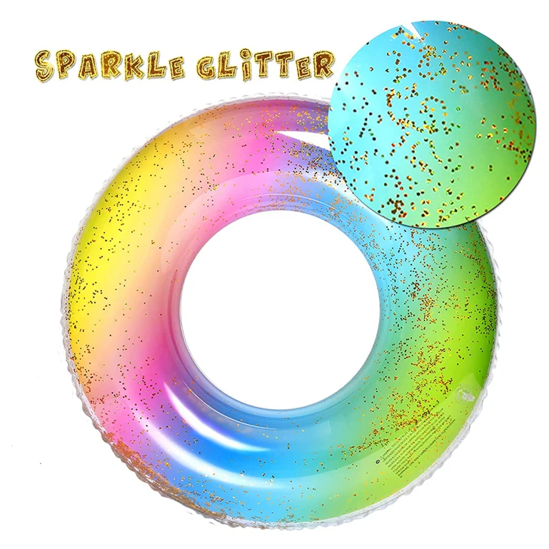 This kind of lightweight glitter swimming tube is a stand out for any pool, made of PVC, which is thick, soft and durable.
