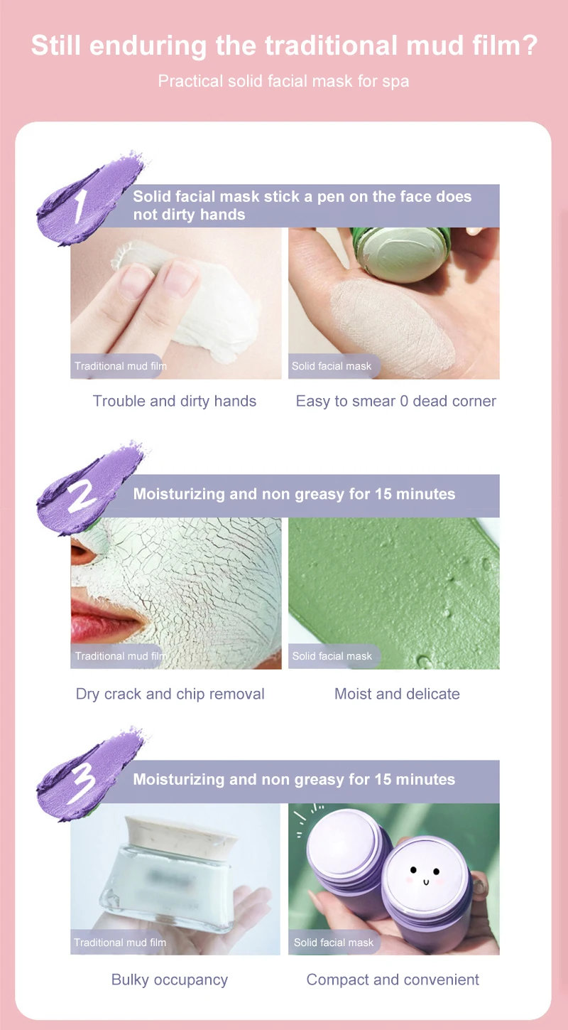 Зеленая чайная твердая маска персиковая баклажана Очищающая глиняная маска бамбуковый уголь Глубокая очистка грязевая маска палочка увлажняющий уход за кожей