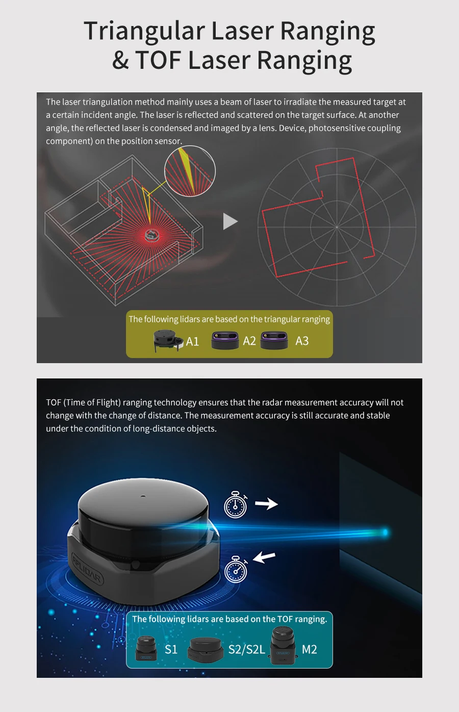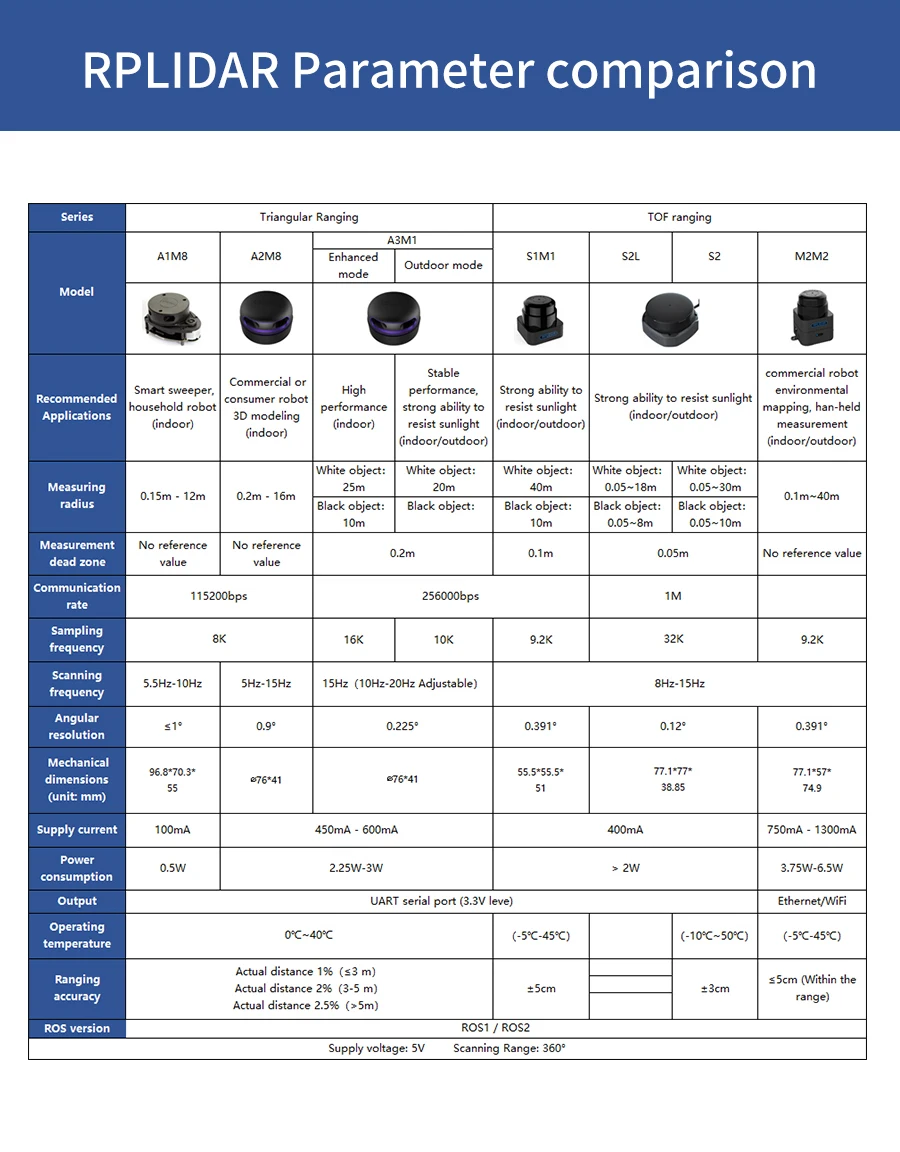 SLAM lidar в настоящее время является самым популярным и экономически эффективным лидаром в области аппаратного обеспечения с открытым исходным кодом. Он обладает небольшим размером и отличным качеством, поддерживает сканирование на 360 ° и измерение расстояния, может использоваться на персональном компьютере или Jetson NANO Raspberry Pi и других микроконтроллеров с помощью usb-кабеля для передачи данных. Мы предоставим много обучающих материалов и кодов, а также обучающие материалы robot ROS. Эти lidar разделены на 6 различных моделей, каждая из которых имеет разную форму и производительность, и пользователи могут выбрать в соответствии с их требованиями