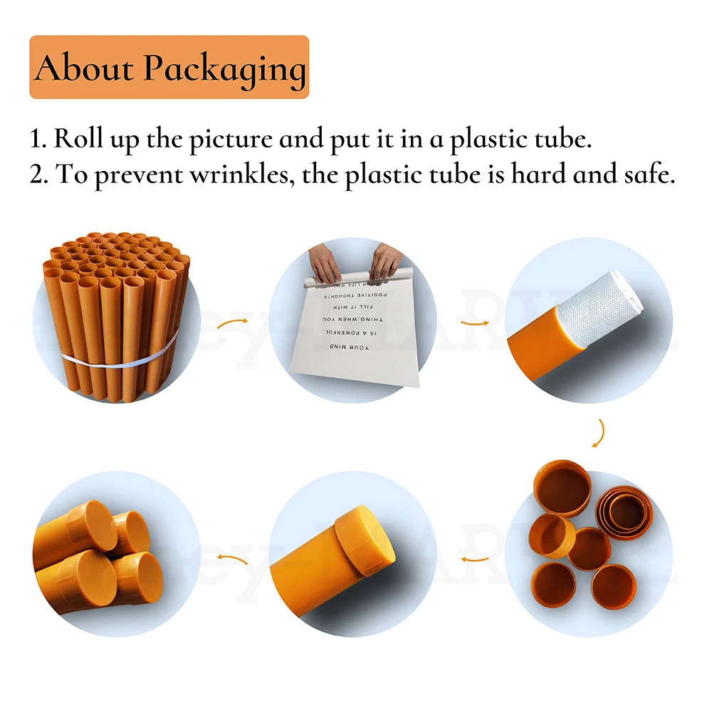В нашем магазине картины холста до 20 см (7,87 дюйма) будут отправлены в конвертах, но более 20 см будут отправлены в твердой и безопасной трубчатой упаковке.