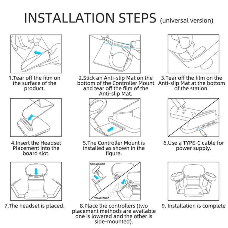Настольная витрина для очков VR, совместимая с большинством устройств VR на рынке, таких как Oculus Quest 1/2, Pico Neo 3, индекс клапанов, Dream/3 и т. д.