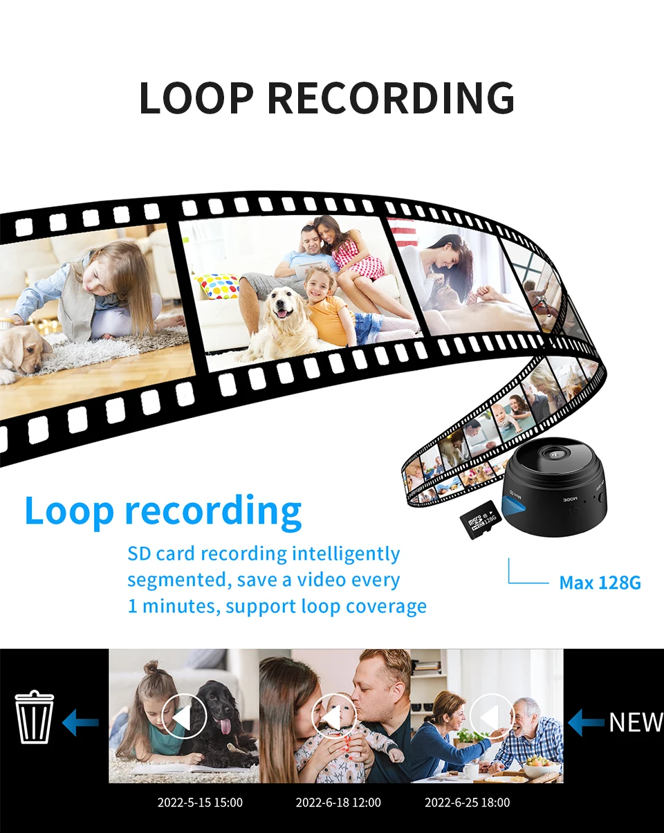 Запись sd-карты интеллектуальная сегментация, сохранение видео каждые 1 минуту, поддержка покрытия петли