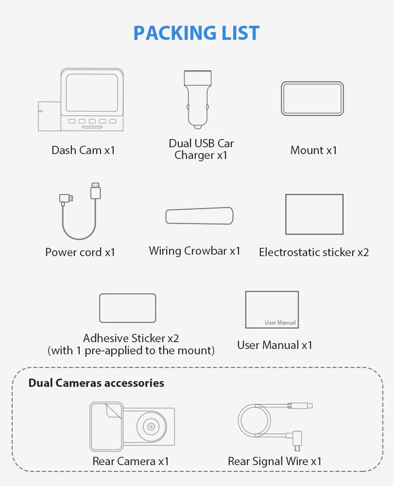 4-Стекло 170 градусов 1080P заднего Камера (опционально) с GC2053 датчик