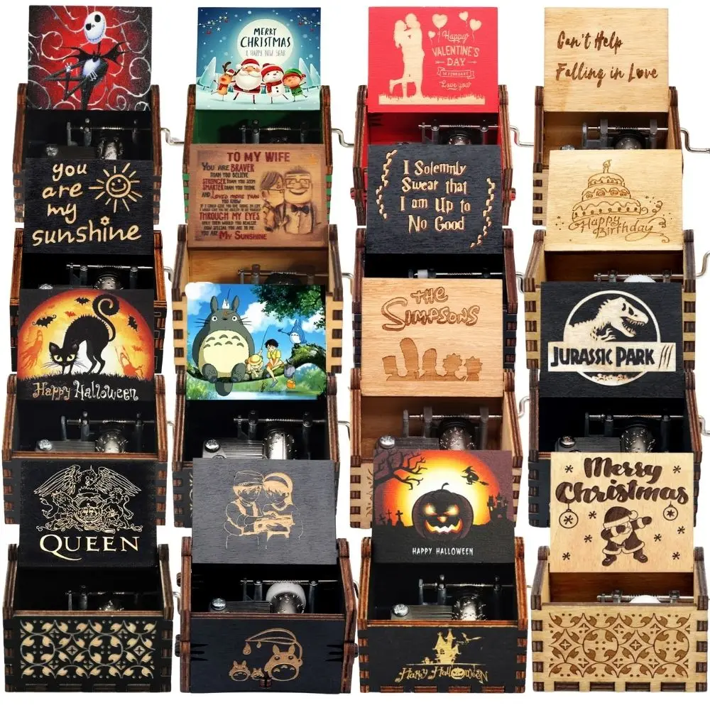 В наличии оптовая продажа деревянная музыкальная шкатулка Рождественский подарок