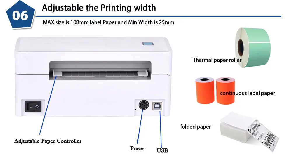 LМаксимальная ширина печати 108 мм и регулируемый мини-размер 25 мм и максимальный размер 108 мм