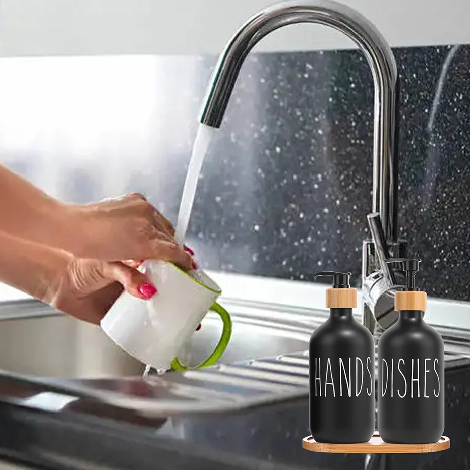 Черная мыльный диспенсер для посуды бутылка для рук кухонная посуда моющее средство для хранения Многоразовые бутылки для шампуня для ванной комнаты с бамбуковым насосом
