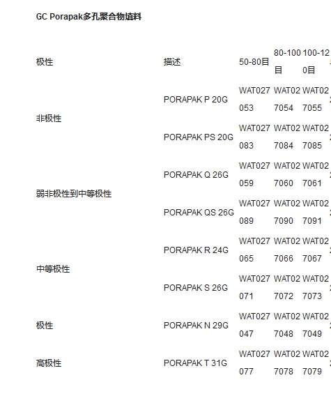 Waters GC Porapak Porous Polymer Filler Waters WAT027053 Waters WAT027054 WAT027055 Waters WAT027083 WAT027084 Waters WAT027085 WAT027059 Waters WAT027060 WAT027061