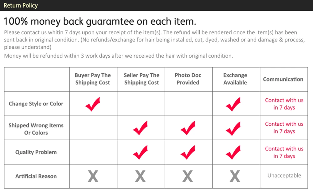 При возникновении любых проблем с качеством, пожалуйста, сначала свяжитесь с нами и предложите фотографии. После подтверждения, вы можете вернуть товар обратно для полного возврата денег.