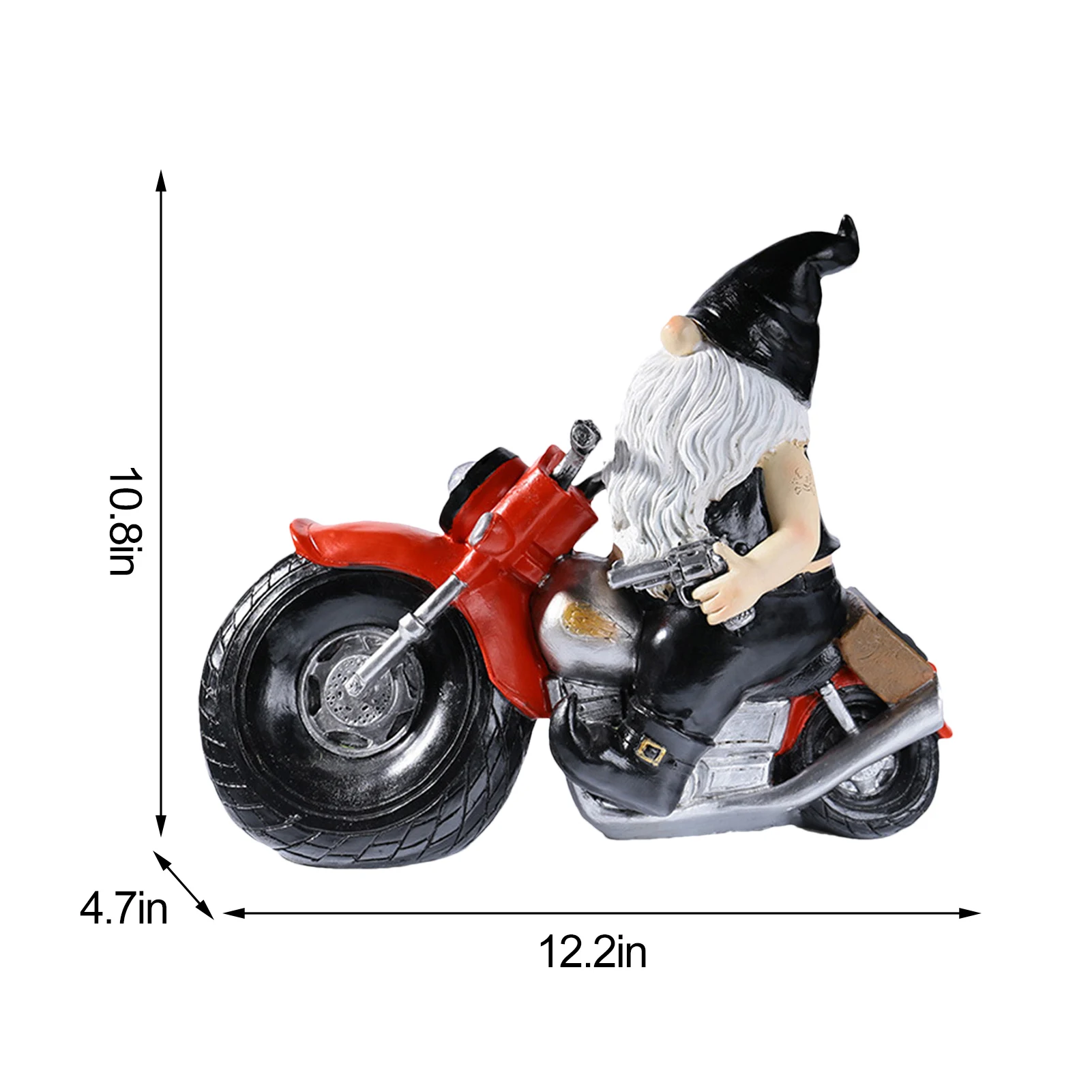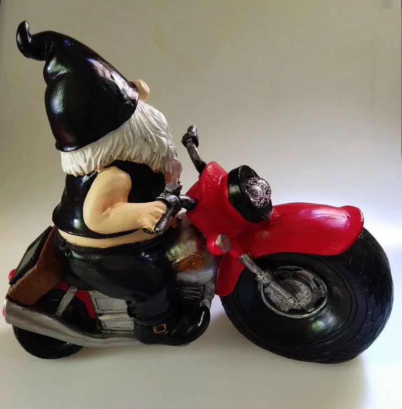 3. Уникальная и милая: озорная фигурка гнома приветствует ваших гостей на мотоцикле. Это делает ваш сад или ярд более очаровательным и привлекательным. Поверхность модели имеет четкие линии и реалистичные формы.