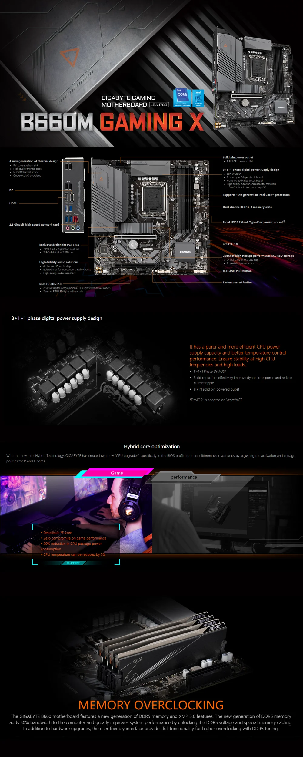 Разъем LGA1700 с поддержкой процессоров Intel Core/PentiumGold/Celeron 12 поколения поддержка s DDR5 5600 (O.C.) / 5400 (O.C.) / 5200 (O.C.) / 4800/4000 МГц