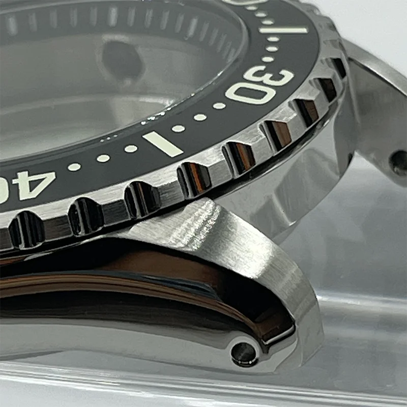 -Чехол из стекла: сапфировое стекло-Безель вставка: черная керамическая вставка с полным покрытием C3. Белая Стальная вставка с точками Lume 12 часов.