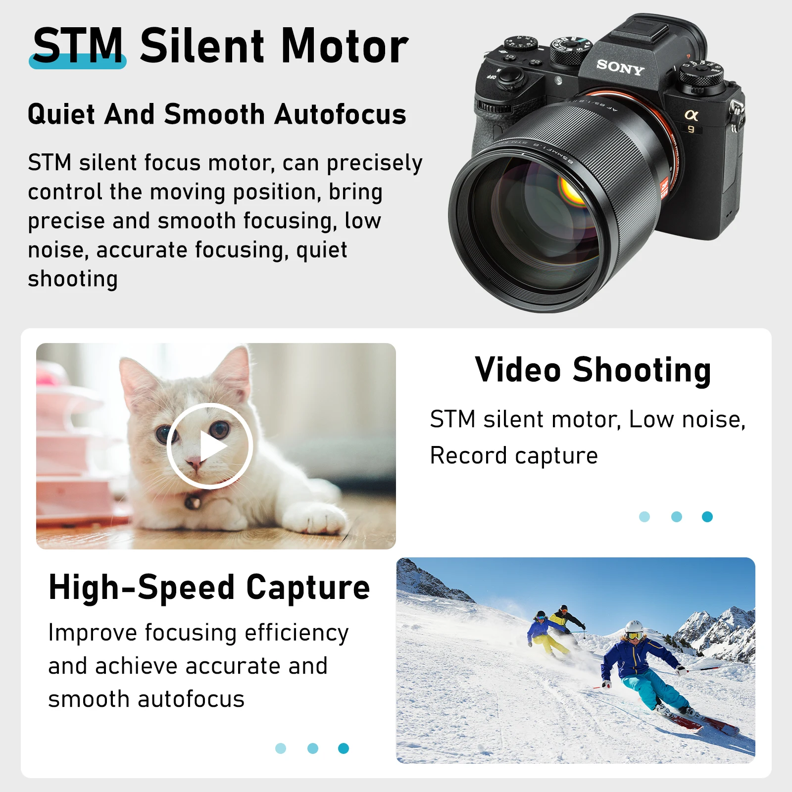 85 мм F1.8 STM поддерживает функцию фокусировки глаз Sony, процент успеха фокусировки глаз (eye AF *) увеличивается примерно в 2 раза, отслеживая предмет, более эффективно идентифицируя и снимая съемку